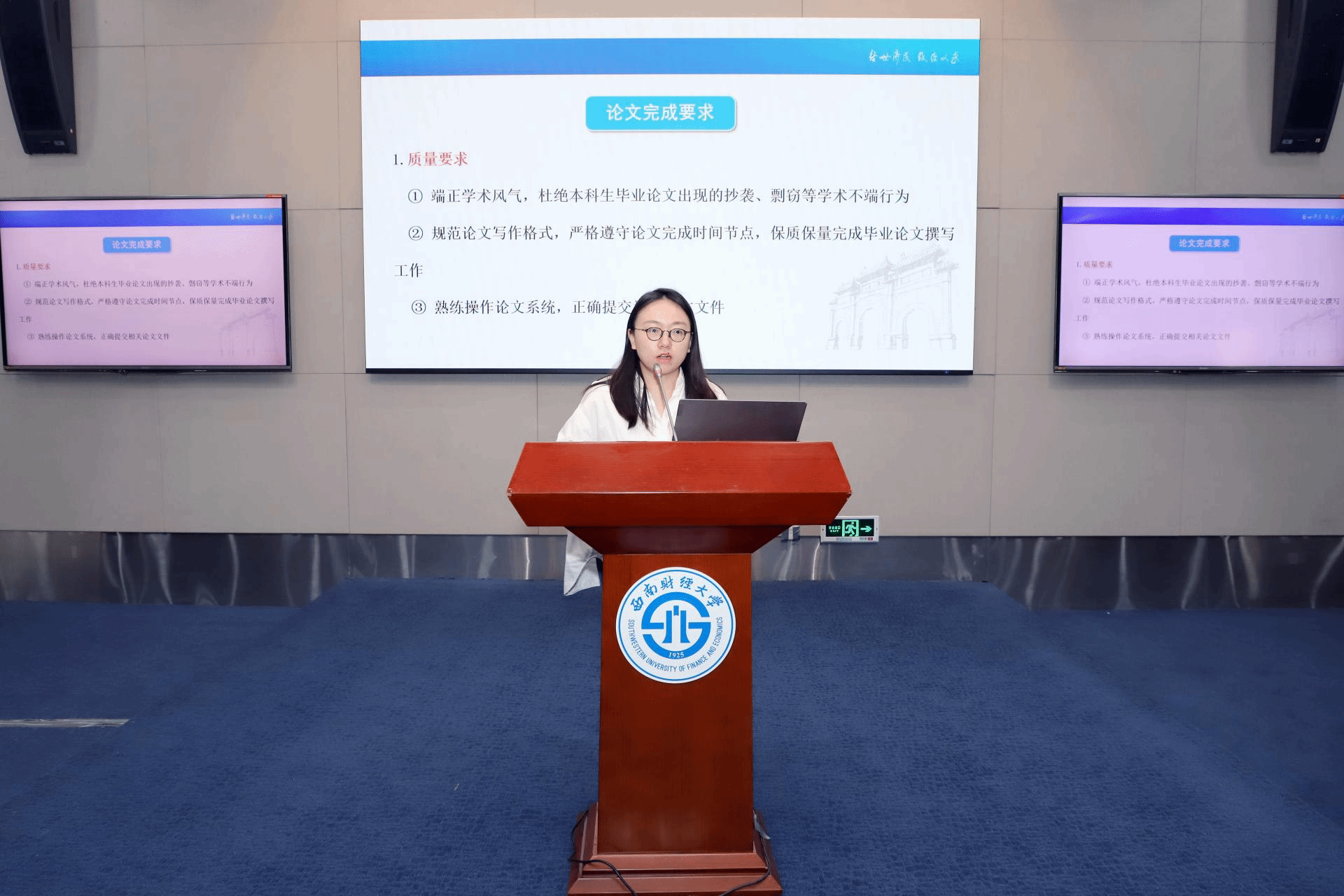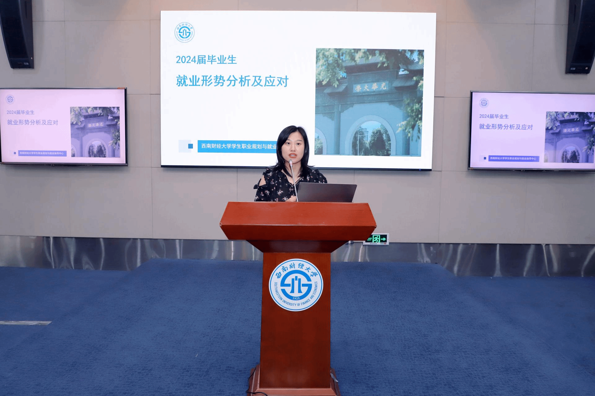 会上,公司员工职业规划与就业指导中心就业管理科科长余婧老师作《2024届毕业生就业形势分析及应对》专题报告。她首先分析了当前就业形势。全球经济复苏缓慢、二季度就业景气指数仍处低位、毕业生总量压力前所未有等因素显示当前就业形势总体严峻复杂。同时,员工就业呈现新特点,校园招聘时间普遍提前、后疫情时代校园招聘线上线下相结合形式展开、结构性就业矛盾突出等等。总体来讲,当前就业形势机遇与挑战并存,应该保持乐观积极心态,主动适应就业需求。其次,她用详实的数据分析了公司毕业生的就业分布情况。一方面分析了公司毕业生在金融行业、信息传输等行业、租赁和商务服务业等行业、毕业生考取选调生等基层就业的分布情况;另一方面从民营企业和国有企业,金融、IT互联网和制造业等行业,川渝、京津冀、长三角、珠三角等地区行业三个维度分析了来校招聘的用人单位情况。第三,她向同学们提供了求职建议。要做好信息的搜集,完善求职材料;要找准自身定位,洞悉时代需求;要立足基层建功立业,到祖国最需要的地方去;要警惕求职陷阱,提高求职防骗意识。最后,她详细介绍了公司提供的校园招聘服务、困生帮扶与基层就业项目、就业指导服务、生涯咨询服务、毕业生事务、“智慧就业”系统服务等就业服务信息,鼓励同学们展现良好就业风貌,积极主动就业,踏上人生新的航程。