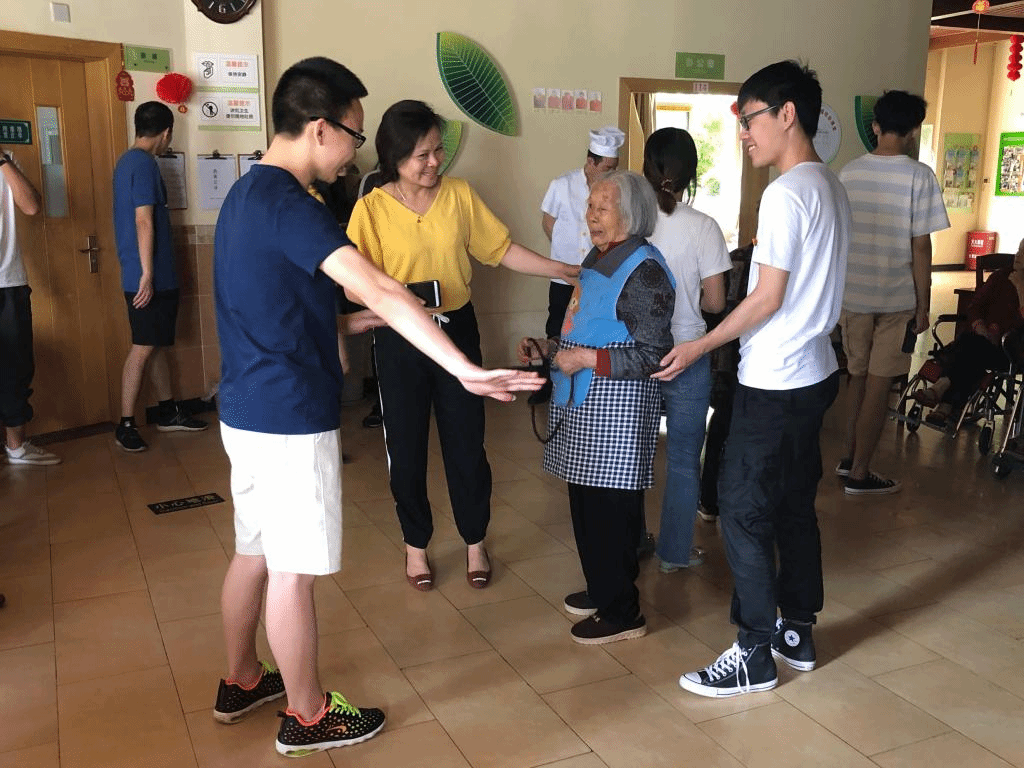 同学们一到敬老院就热情地投入到志愿服务之中,首先帮老人们收拾整理屋子,陪老人聊天说话,布置活动场地,将老人细心搀扶到活动场地。《同心同乐》和《猜词接龙》两个互动小游戏,一下就把老人们的热情给调动了起来。同学们合唱《保卫黄河》、《我和我的祖国》等经典红歌,唤起老人们的红色记忆,教老人们练习金龙拍拍操,在平时都可以简单活动筋骨,强健身体。老人们主动表演才艺《回娘家》,带领支部的志愿者们一起跳舞,同学们和老人一起边跳边唱。最后,大家陪老人们聊起了家常里短的小事,给老人按摩,帮老人整理内务,用服务和倾听陪伴老人们度过愉快的时光,小小的院子里充满着温暖和欢乐