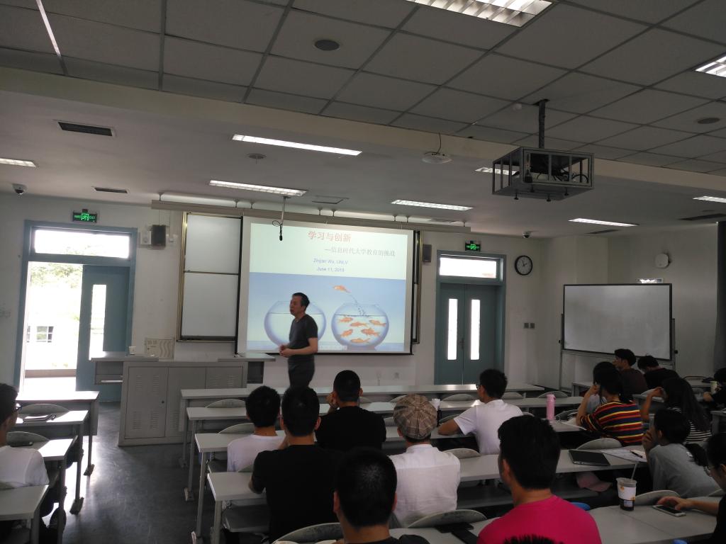 为更进一步帮助准备同学们更好的了解自己的专业,更加科学的投入学习生活,6月11日下午,经济tyc5997太阳集团邀请到了美国内华达大学拉斯维加斯分校数学系主任吴志坚教授在经世楼F201为公司2017级全体员工举行了题为“学习与创新---信息时代大学教育的挑战”的专题讲座。