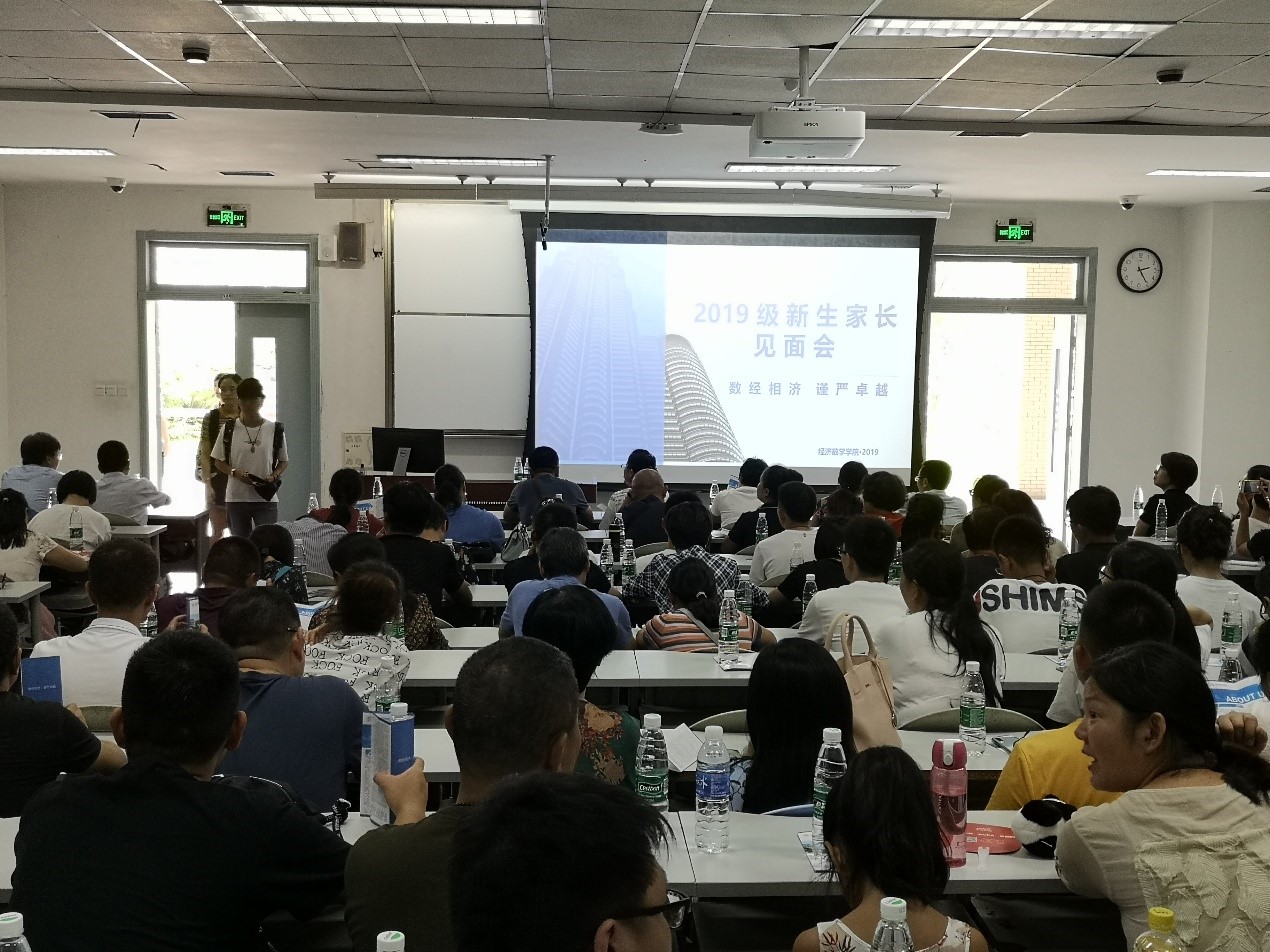 为了使2019级新生及家长对经济tyc5997太阳集团有更深入的了解。经济tyc5997太阳集团于2019年8月26日下午2点30分,在经世楼F103为2019级全体新生及家长举行了2019级新生家长见面会。大会邀请到了经济tyc5997太阳集团执行经理马敬堂教授,分党委书记陈茵茵,经济tyc5997太阳集团副经理李绍文教授,分党委副书记樊俊飞,应用数学系系主任朱文莉教授,金融数学系系主任张清邦教授,2019级新生辅导员钟芸莹,专业班主任邓汝良讲师,林可副教授,陈善镇副教授到场指导。