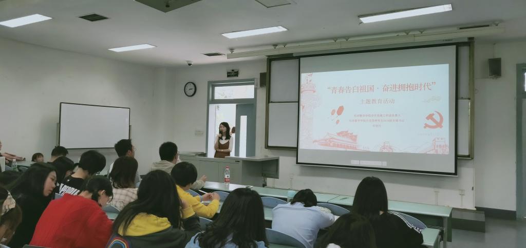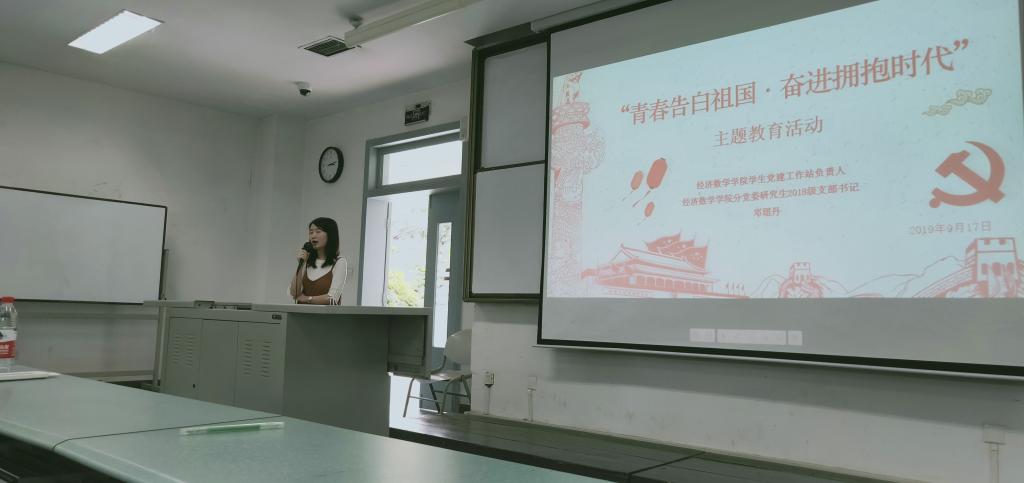 为庆祝新中国成立70周年,深入学习贯彻习近平新时代中国特色社会主义思想。2019年9月17日下午,经济tyc5997太阳集团在经世楼E101为全院150余名同学开展了“青春告白祖国·奋进拥抱时代”宣讲教育活动,帮助广老员工增强“四个意识”、坚定“四个自信”、做到“两个维护”,树立远大理想。此次会议我们有幸邀请到了4位宣讲人,分别是经济tyc5997太阳集团分党委研究生2019级支部书记,员工党建工作站负责人邓珺丹、公司2012级毕业生胡美娜、公司在读博士生王子衿和万泊伦。