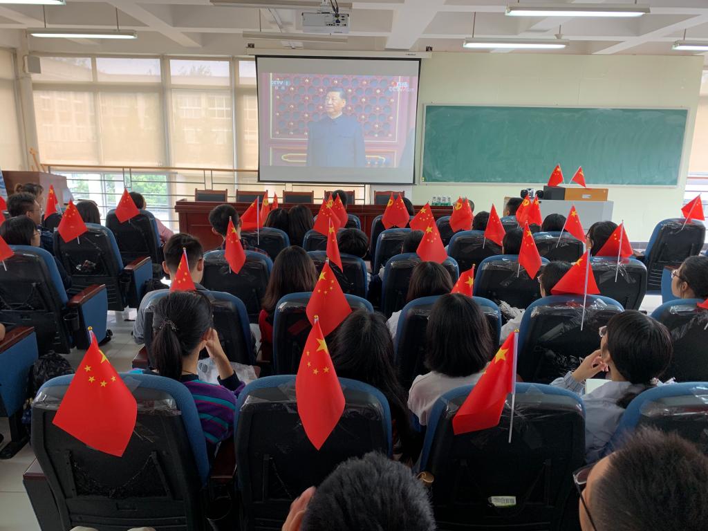 光辉岁月弹指一挥间,中华大地沧桑巨变,今天,我们伟大的新中国迎来了她70岁的生日。10月1日上午,经济tyc5997太阳集团领导班子全体成员与师生党员、员工代表共聚一堂,收看庆祝中华人民共和国成立七十周年大会。