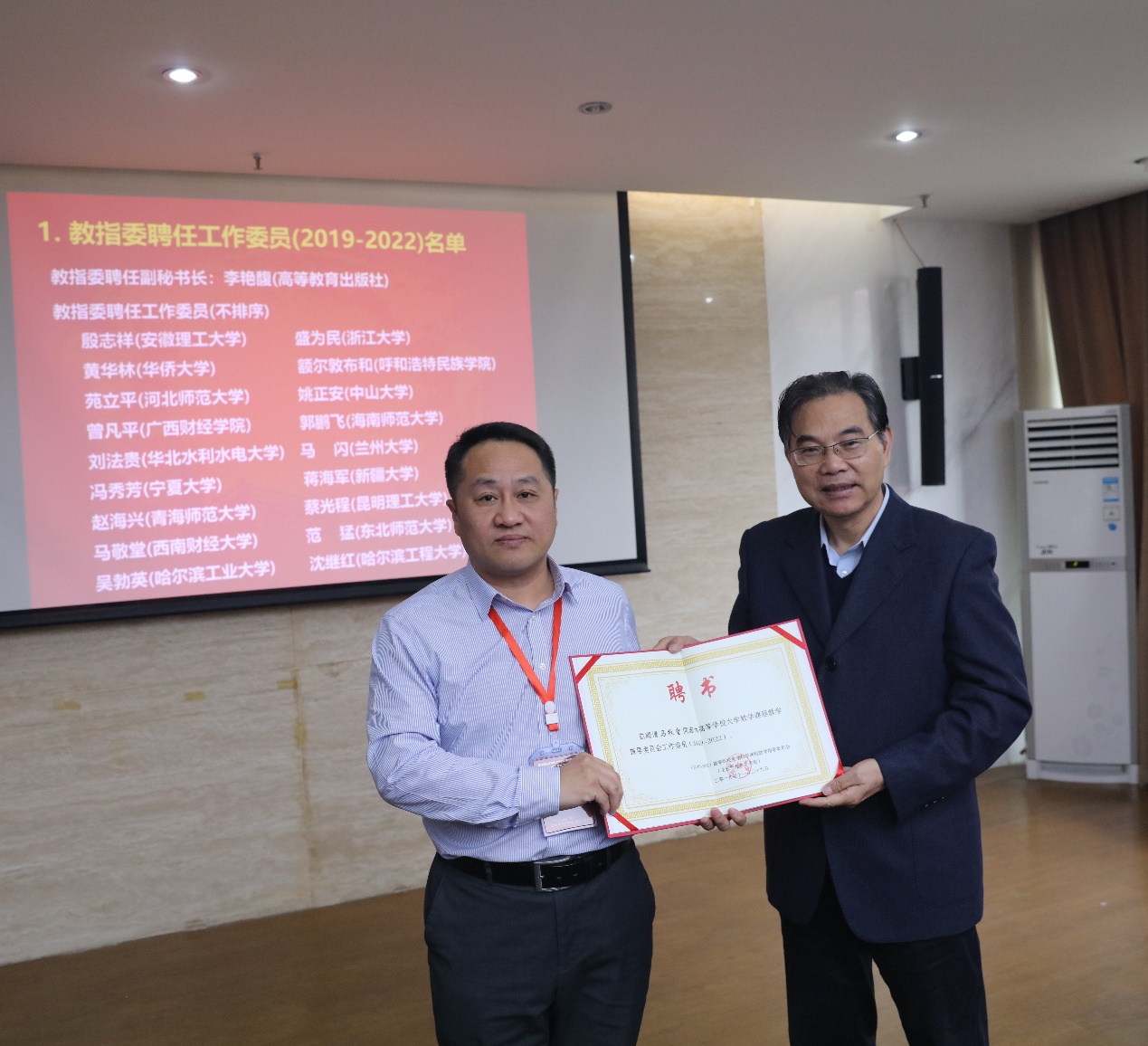 2019年11月29日经济tyc5997太阳集团执行经理马敬堂教授被教育部高等公司大学数学课程教学指导委员会聘为工作委员,并参加了第二次大学数学课程教指委工作会议,会上大学数学课程教指委主任徐宗本院士为其颁发聘书。本次大学数学课程教指委共聘任18位工作委员,分别来自全国各高校。