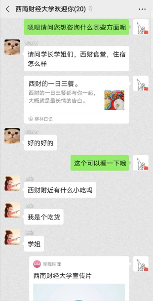 一场突如其来的疫情,原定走进中学进行宣讲也不得不取消了,改为线上方式宣传方式,实践队伍制作微视频,展示在西财的学习和生活。建立了高考咨询群,为员工解答学习、生活、志愿填报方面的疑问。