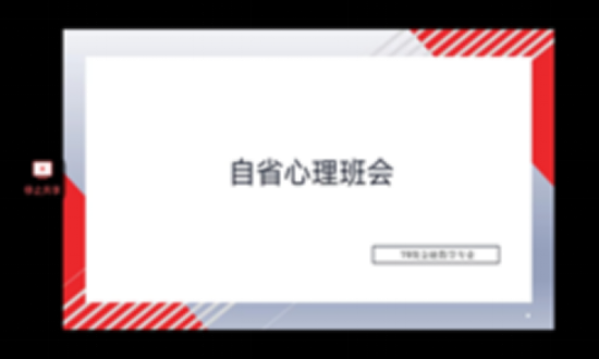 2020年4月28日,2017级金融数学二班开展了以“自省,进步”为主题的心理班会。受疫情影响,本次心理班会在“腾讯会议”平台进行,生活委员卢羿和心理委员姚陆航主持了此次班会。