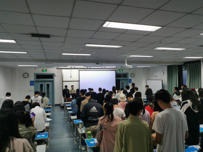 9月29日在经世楼E201,,同学们全体起立唱团歌《光荣啊,中国共青团》。主持人介绍新中国艰苦创业历史,并朗诵了《中国共产党的创立之路》。再通过观看电影《横空出世》,使同学对新中国艰苦创业的历史有一个更加深刻的认识,了解中国是如何在各种压力之下发展强大起来的。之后,同学们观看了现阶段中美关系解读的视频。几位同学结合新中国研制核武器的历史,发表了对现阶段中美关系、中国所面临的挑战的看法。最后,在全体同学齐唱的《国际歌》中,本次团日活动落下帷幕。