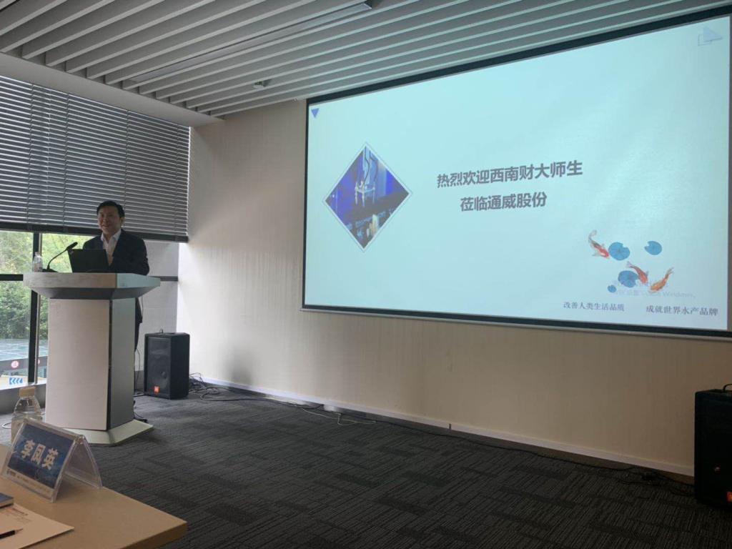 下午1点,公司辅导员邹先云老师、王蓉老师和专业课班主任李凤英老师组织同学们在公司南门集合,一起乘车前往通威集团国际中心,到达目的地后,受到了企业的热烈欢迎。通威讲解员首先用一段视频为同学们介绍了通威集团的发展历程和企业规模,带领同学们参观了公司获得的各项荣誉,同学们感受到了通威集团的雄厚实力和社会担当。接着用数字沙盘形象地为同学们介绍了公司的两大主产业链:农渔全产业链与新能源光伏发电全产业链。两大产业链以“使生活更美好”为宗旨,处处体现出高效先进,规模庞大,绿色生态,最后两大产业链融为一体,以水下生态养鱼,水上光伏发电的形式展现在同学们面前。在参观古代鱼文化与太阳文化时,同学们不仅近距离观察了古时人们捕鱼的工具,还通过模拟鱼塘体验到了喂鱼的乐趣。随后同学们参加了一场由通威集团金融总监邱艾松和人力资源部副部长闫娇主持的座谈会,邱艾松总监介绍了通威集团的企业文化和发展理念,闫娇部长与同学们探讨了通威集团的人力资源管理机制和企业经营管理模式,同学们积极地和闫娇部长互动,提出了自己的疑问与思考。