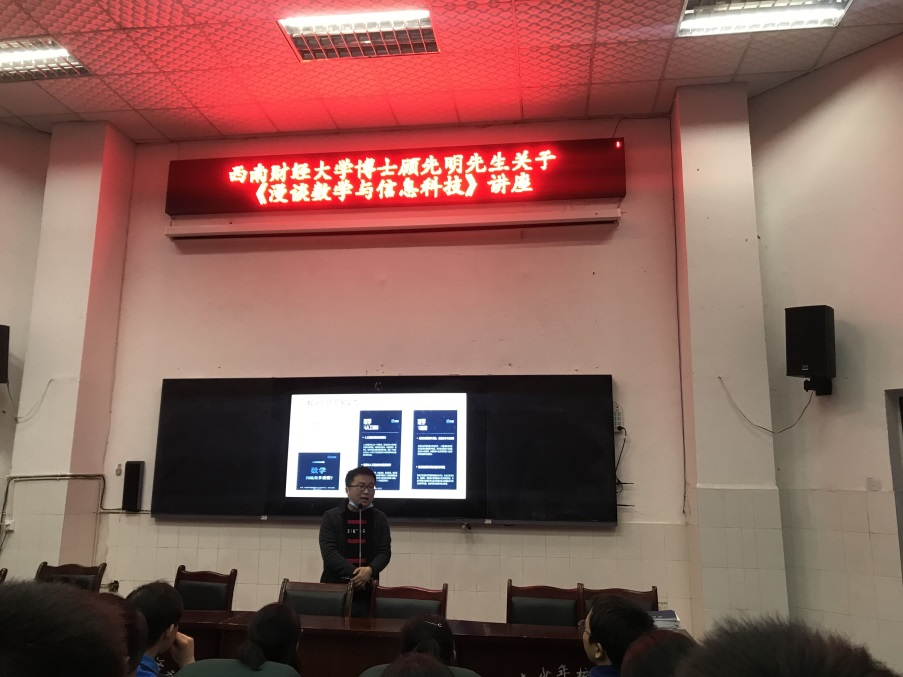 会上,经济tyc5997太阳集团副教授顾先明做了题为《漫谈数学与信息科技》的讲座。当今正处在信息科技高速发展的时代,国产芯片的开发、5G网络和大数据技术及应用等都引起广泛关注,吸引了大量的科研人员投身时代潮流,讲座从高中数学基础出发,通俗易懂地解读一些信息科技中所涉及的数学知识及在信息科技中的应用。与会同学纷纷表示受益匪浅,激发了数学学习热情。