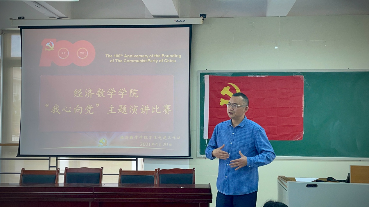 为隆重庆祝中国共产党成立100周年,2021年4月20日下午,经济tyc5997太阳集团员工党建工作站在通博楼B412举办“我心向党”主题演讲比赛。经济tyc5997太阳集团分党委书记陈茵茵、员工工作部副部长王苏、校团委副书记王昱夫、校宣传统战部王中举、经济tyc5997太阳集团副经理丁川、专业班主任李凤英、辅导员王蓉等7位老师担任评委老师。共11名选手参加本次演讲比赛。