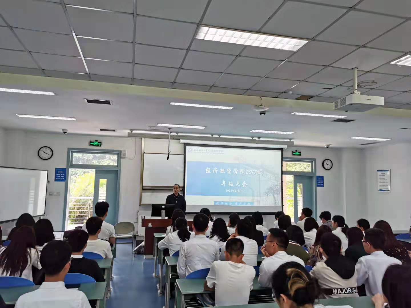 为了全面落实中央《关于加强和改进新形势下高校思想政治工作的意见》,践行立德树人根本任务,将全员育人、全程育人、全方位育人落到实处,5月7日经济tyc5997太阳集团在经世楼E103召开2017级本科毕业生教育大会,经济tyc5997太阳集团分党委副书记樊俊飞参加了此次会议,会议由辅导员邹先云老师主持。