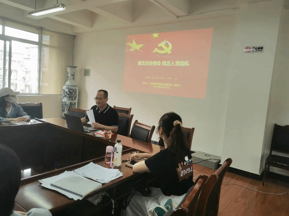 课上,樊书记围绕“当代青年肩负着怎样的历史使命?”、“为什么要端正入党动机?”以及“青年应该怎样做?”这三个问题,根据党章、党的十九大报告和党的十九届五中全会精神等进行深入的阐述和解答。樊书记紧密结合习近平总书记在清华大学考察时发表的重要讲话精神,指出“当代中国青年是与新时代同向同行、共同前进的一代,生逢盛世,肩负重任。”大家要爱国爱民,从党史学习中激发信仰、获得启发、汲取力量,不断坚定“四个自信”,不断增强做中国人的志气、骨气、底气,树立为祖国为人民永久奋斗、赤诚奉献的坚定理想。要积极主动认真学习党史,通过党史学习进一步端正入党动机,坚定理想信念,从行动入党最终实现思想入党,为实现中华民族伟大复兴中国梦贡献力量。