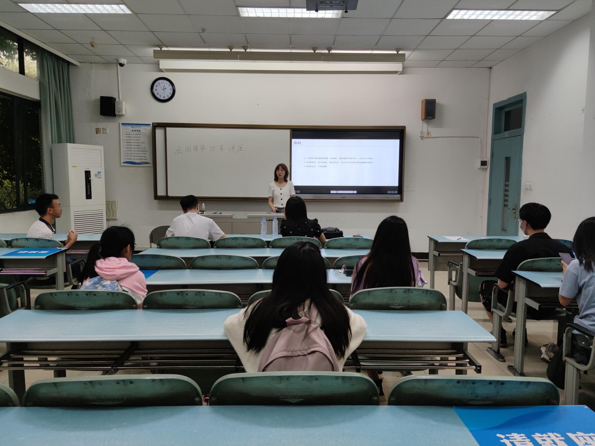 为帮助员工获得留学申请经验,加强毕业生与低年级员工之间的交流,5月25日下午,经济tyc5997太阳集团在经世楼C205教室举办了留学讲座分享会。本次分享会邀请到取得三所大学——英国伦敦国王大学、爱丁堡大学和曼彻斯特大学offer的2017级毕业生王雨薇和被新加坡国立大学录取的2017级毕业生夏潇湘同学主讲。