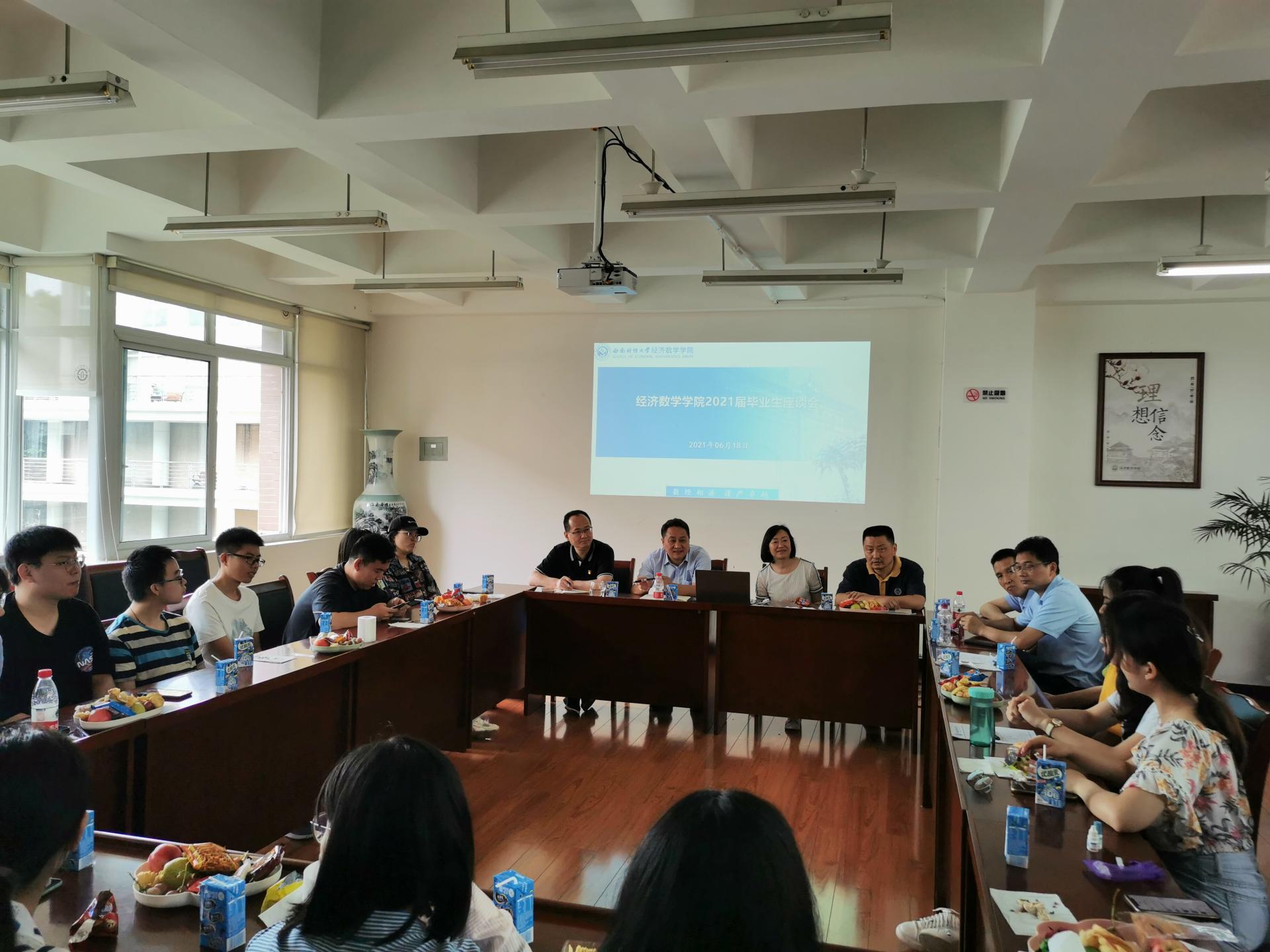 为提升公司办学水平,提高公司人才培养质量,经济数学公司于6月18日上午在通博楼B312会议室召开2021届毕业生座谈会,经济tyc5997太阳集团分党委书记陈茵茵、经理马敬堂、副书记樊俊飞、副经理李绍文、副经理丁川、部分教师代表及2021届20余名本硕博毕业员工代表参加了此次会议。