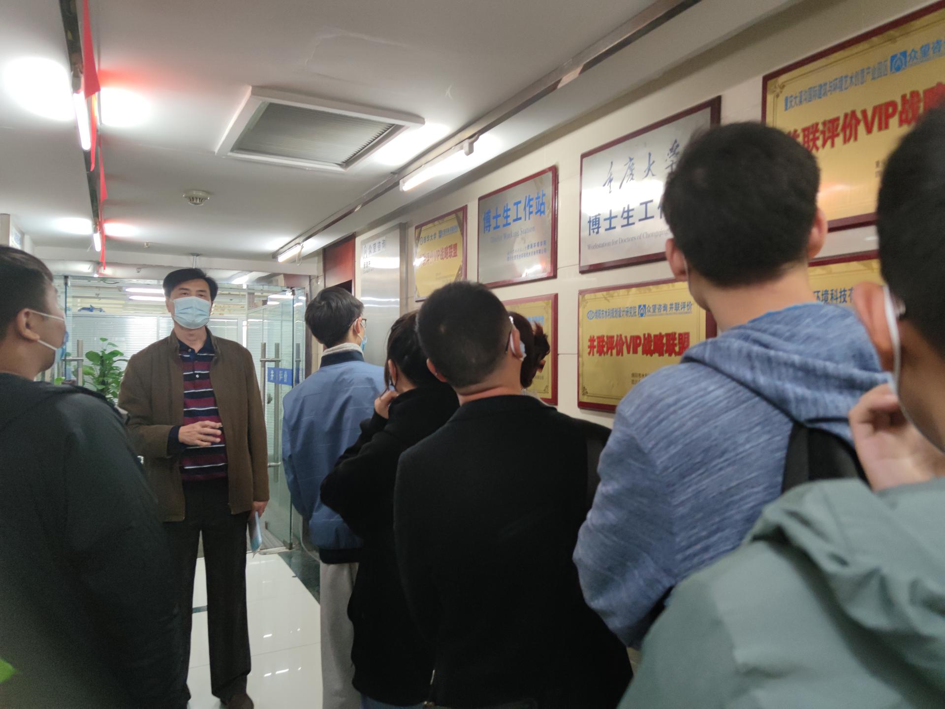同学们首先参观了该企业各部门的工作区域,熟悉各部门的基础工作,通过参观同学们了解了作为第三方鉴定机构的工作内容、项目流程,看到众望公司所获得的表彰成就,也感受到了其作为鉴定机构的社会责任和价值,对众望公司有了更直观、更立体的了解。在参观过程中老师同学们积极思考,不时提出自己的困惑,同时根据自己所学的知识一同探讨了该产业的经营管理机制与未来发展前景。