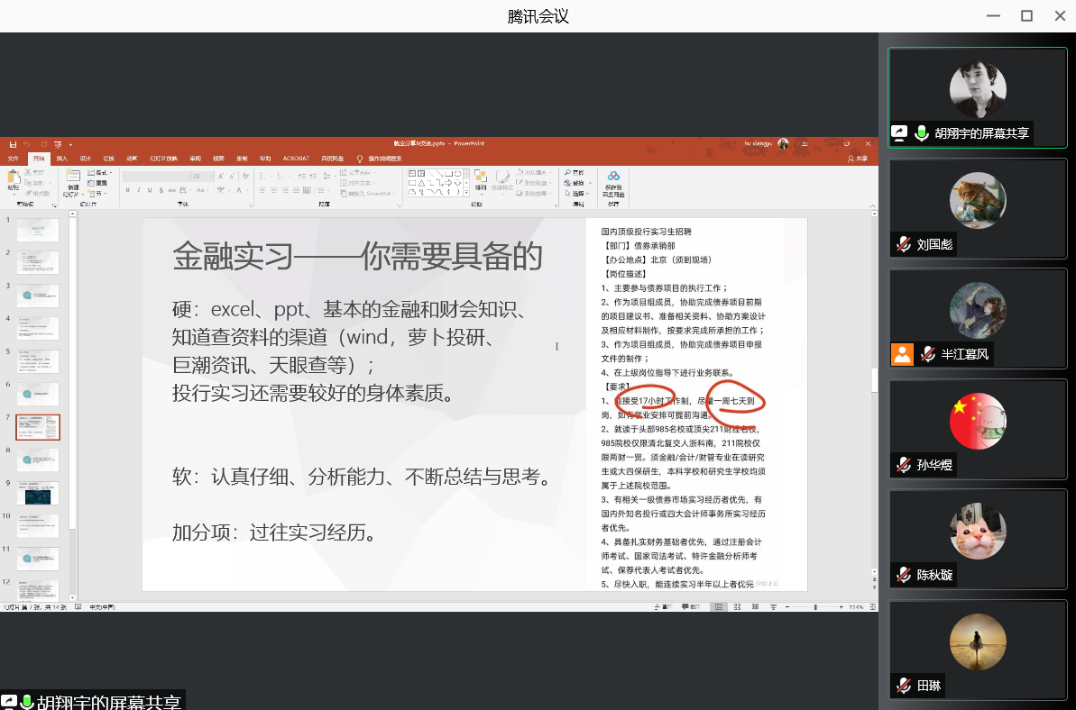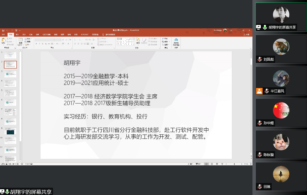 为更好的优化人才培养方案,增加同学们了解市场需求的了解,增加求职竞争力,经济tyc5997太阳集团自2020年起开展“职因有你”系列员工职业生涯类的讲座、交流座谈会类活动。2021年10月30日,邀请到了就目前职于四川省工商银行的胡翔宇、李逸凡、孙华煜、刘之豪、熊欣宇、奉雪六位优秀毕业生开展了线上就业分享讲座。针对在校员工了解自身想从事行业的行业动态,岗位要求及其职业发展路径做出了指导。