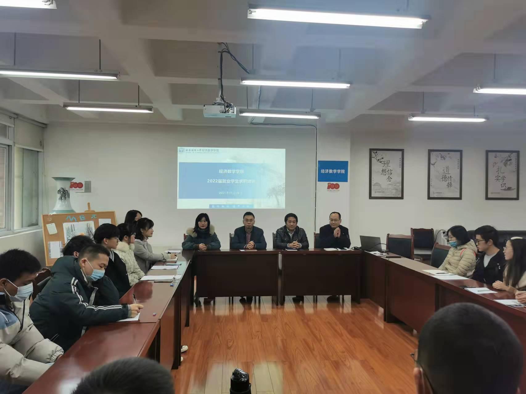 为了更好地帮助2022届毕业员工更好的把握求职过程中的各个环节,顺利求职,11月26日经济tyc5997太阳集团在通博楼B312举办了毕业员工座谈及求职技能培训会。经济tyc5997太阳集团经理马敬堂、分党委副书记樊俊飞、副经理丁川、公司职业规划与就业指导中心余婧、毕业班辅导员以及部分正在求职的2022届本科和研究生参加了此次座谈和培训会,会议由分党委副书记樊俊飞主持。