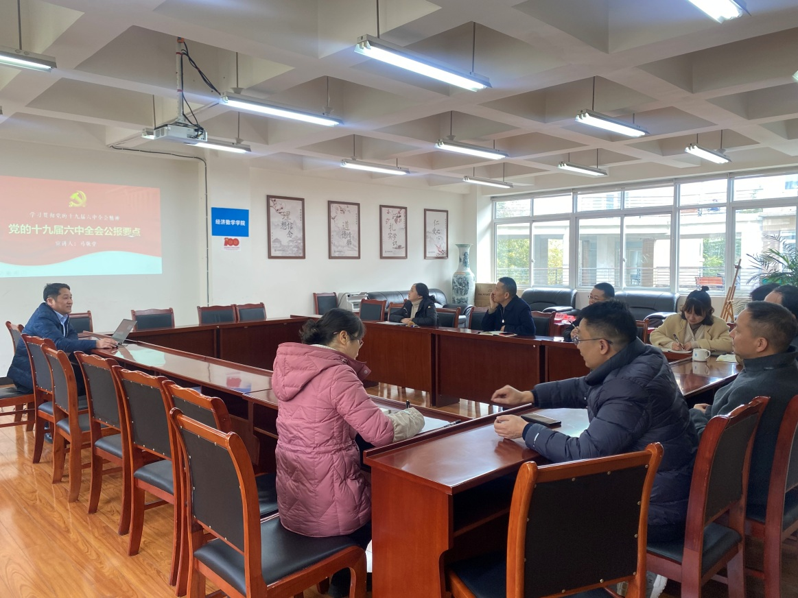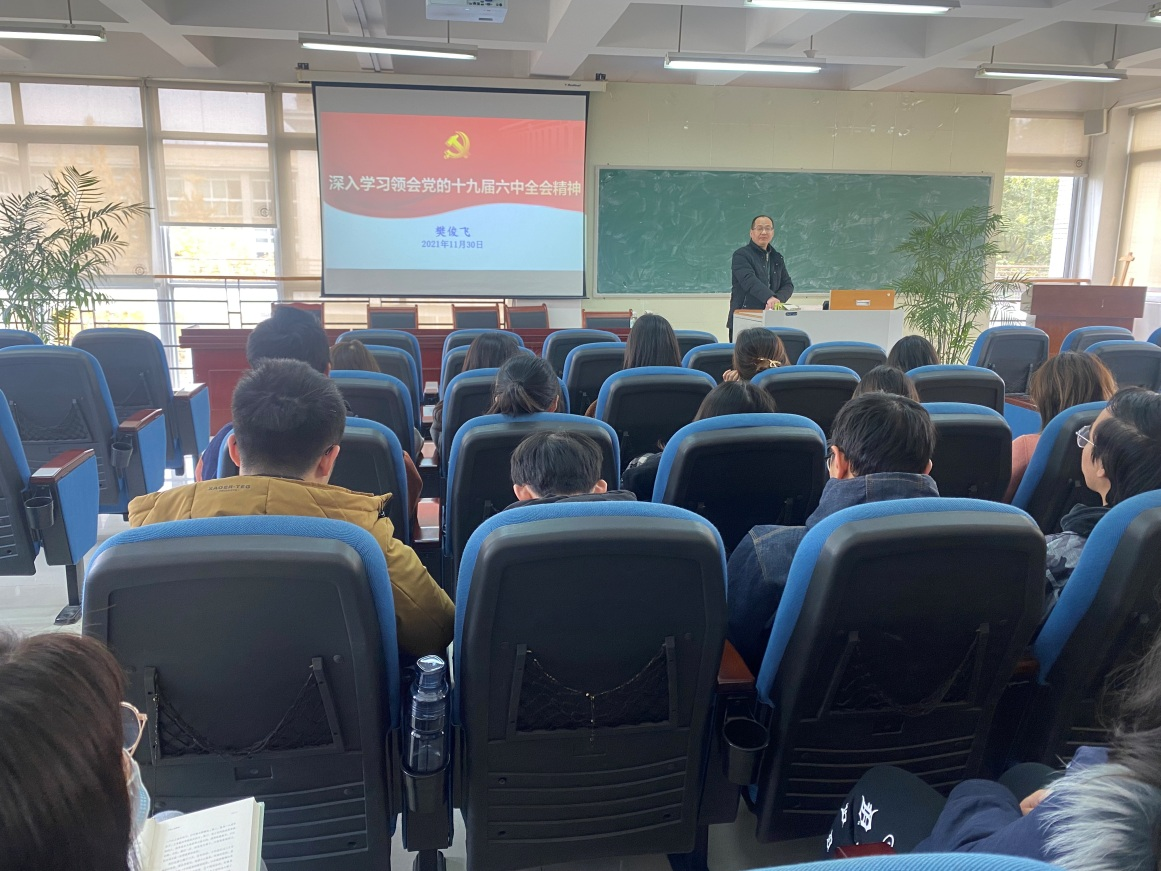 为深入学习党的十九届六中全会精神,加深对党的百年奋斗重大成就和历史经验的深刻理解,经济tyc5997太阳集团扎实开展党的十九届六中全会精神宣讲工作。11月30日下午,公司执行经理马敬堂与教师第一党支部、教师第二党支部和教师第三党支部的支部书记和支部委员共同交流学习了全会公报要点,研究部署各支部开展全会精神专题宣讲工作。公司党委副书记樊俊飞带领2019级本科金融数学2班全体员工深入学习领会全会精神,要求全体同学们在认真学习全会精神的基础上明确使命,成长为担当民族复兴大任的时代新人。公司副经理丁川结合公司团队建设与硕士点、博士点专业建设,员工个人发展和职业规划等内容向公司全体研究生、博士生党员进行了全会精神要点解读。