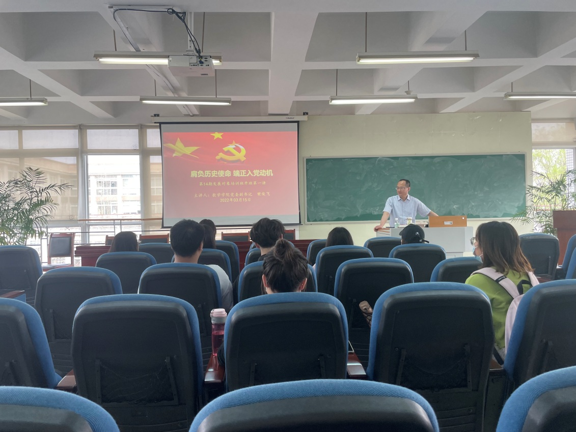 2022年3月15日下午,tyc5997太阳集团分党校第14期党员发展对象培训班开班式于通博楼B412会议室举行。公司党委副书记樊俊飞以“明确历史使命,端正入党动机”为主题,为第14期党员发展对象培训班全体学员讲授党课。