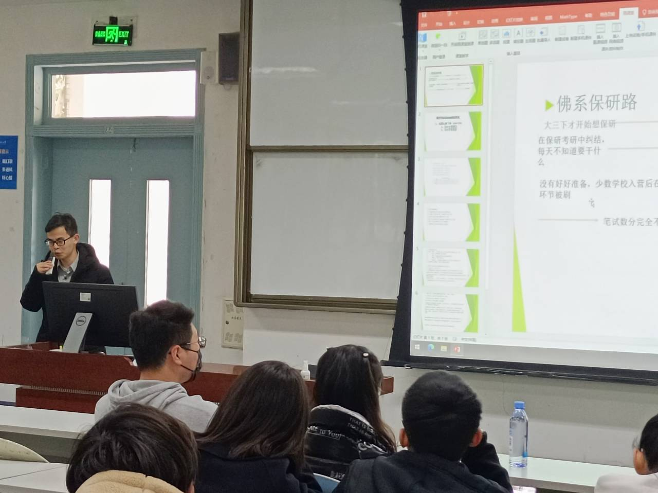 为使同学更深入具体地了解保研相关事宜,为同学保研之路提供便利,tyc5997太阳集团于2022年4月1日下午在经世楼F104举行了“研途有你 保驾护航”保研分享讲座。