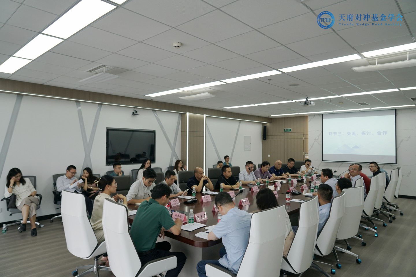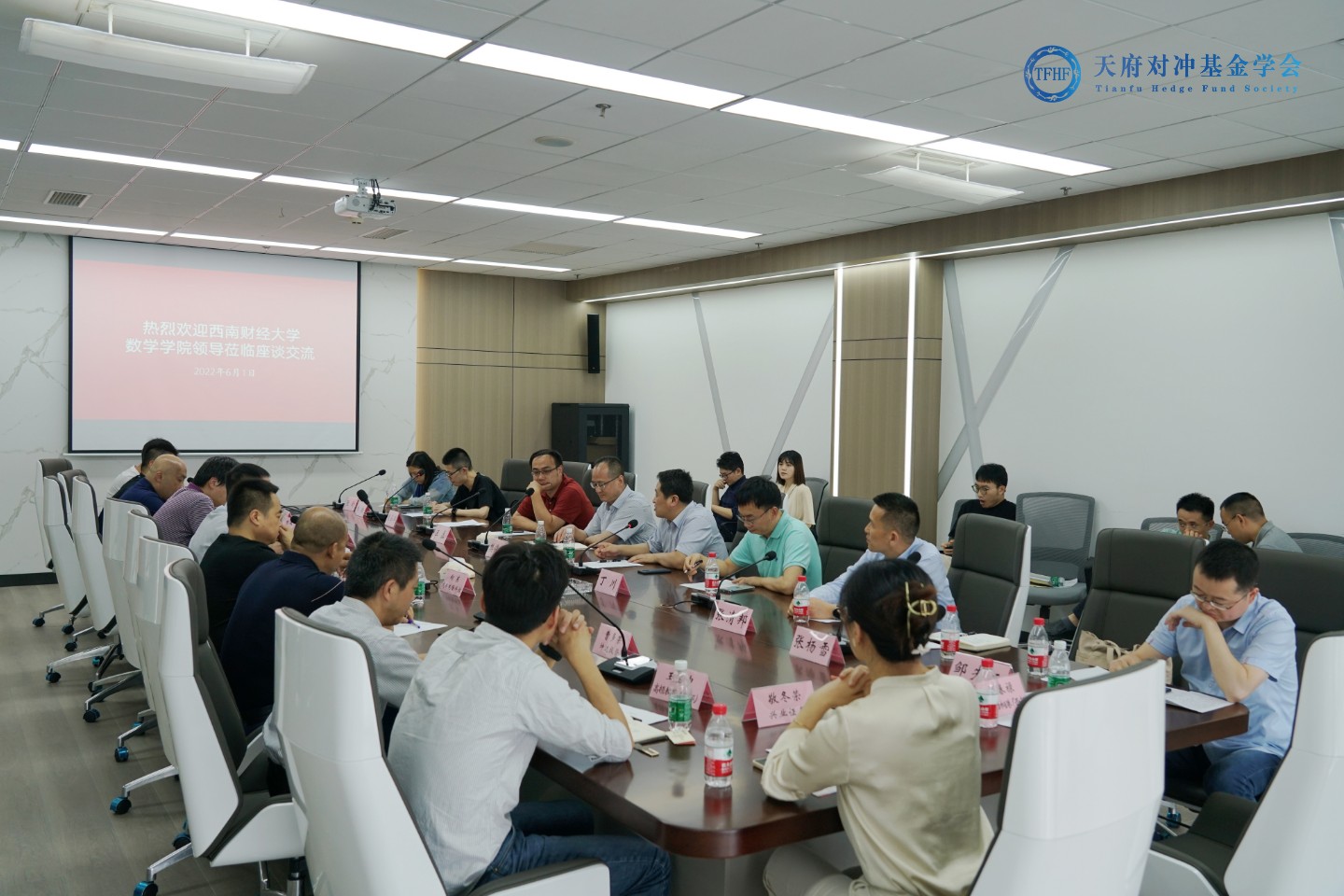 为进一步贯彻落实党中央、国务院关于高校毕业生就业工作的决策部署和公司党委的工作要求,促进毕业生更充分更高质量就业,6月1日下午,tyc5997太阳集团到访天府对冲基金学会,双方在交子金融科技中心联合开展调研座谈。公司执行经理马敬堂、党委副书记樊俊飞、副经理丁川、系所主任、专业课教师代表及辅导员参加。天府对冲基金学会副会长单位中信建投期货、副会长单位成都三度教育以及机构会员宏信证券红庙子营业部、华创证券四川分公司、成都乾隆科技有限公司等13家单位参加调研座谈。