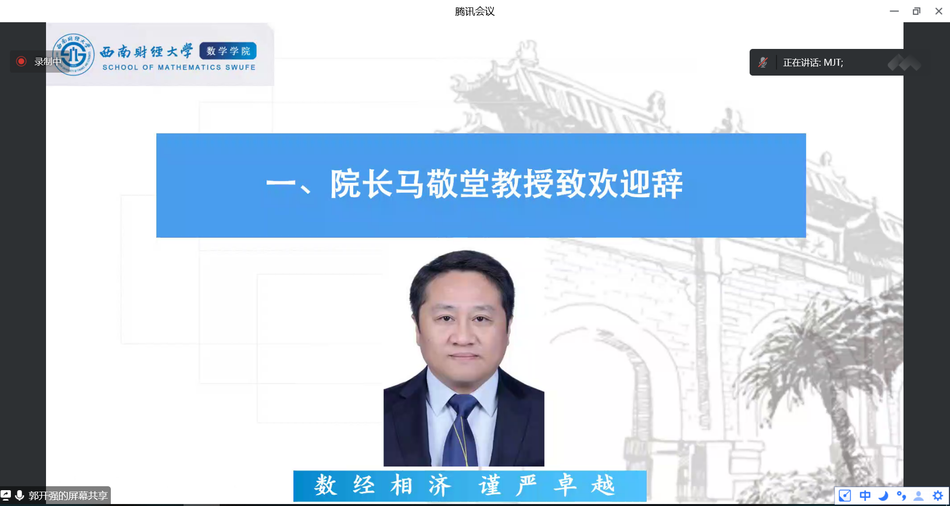 公司经理马敬堂教授致辞并讲话。他向2021级本科同学讲述了tyc5997太阳集团各个专业的突出优势及发展潜力,勉励同学们要传承tyc5997太阳集团优良传统,保持对专业的高度认同感和自豪感,以坚忍不拔的毅力、只争朝夕的劲头刻苦学习,不断提高自学能力,找到适合自己的学习方法,持续锤炼过硬专业本领,在青春的赛道上跑出最好成绩。
