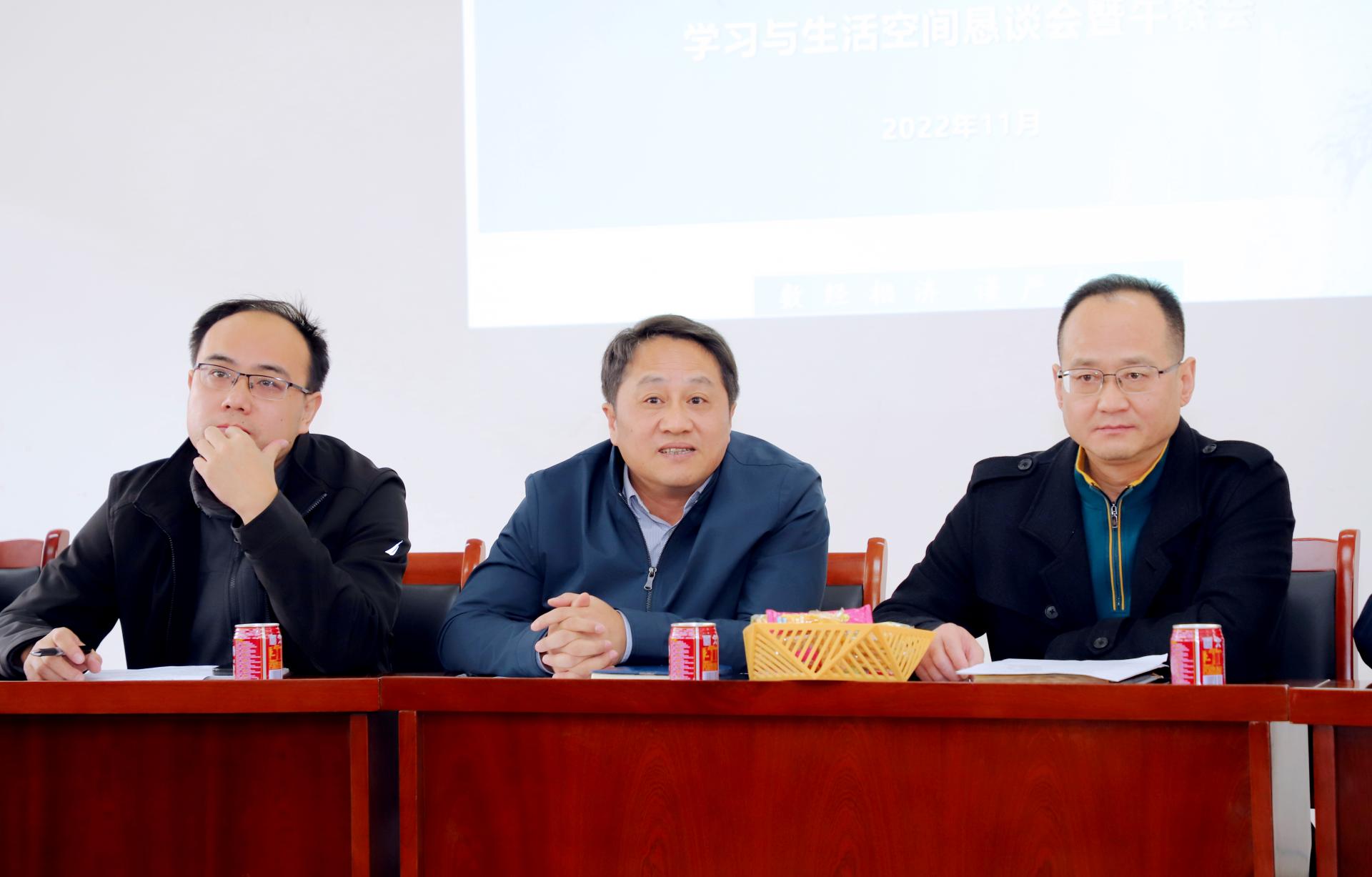 为贯彻落实公司关于组织2022年度学习与生活空间恳谈会的通知要求,充分听取员工意见,全面回应员工关切,11月15日,tyc5997太阳集团在通博楼B312会议室举行了2022年度学习与生活空间恳谈会暨师生午餐会。公司领导班子、系所主任代表、班主任代表、全体辅导员和教学秘书以及来自各个年级的本科生和研究生代表参加会议。会议由公司党委副书记郭开强主持。