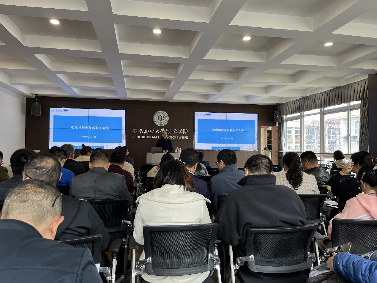 3月21日下午,tyc5997太阳集团在通博楼B412会议室召开全体教职工大会,会议由党委书记樊俊飞主持,全体教职工参加。