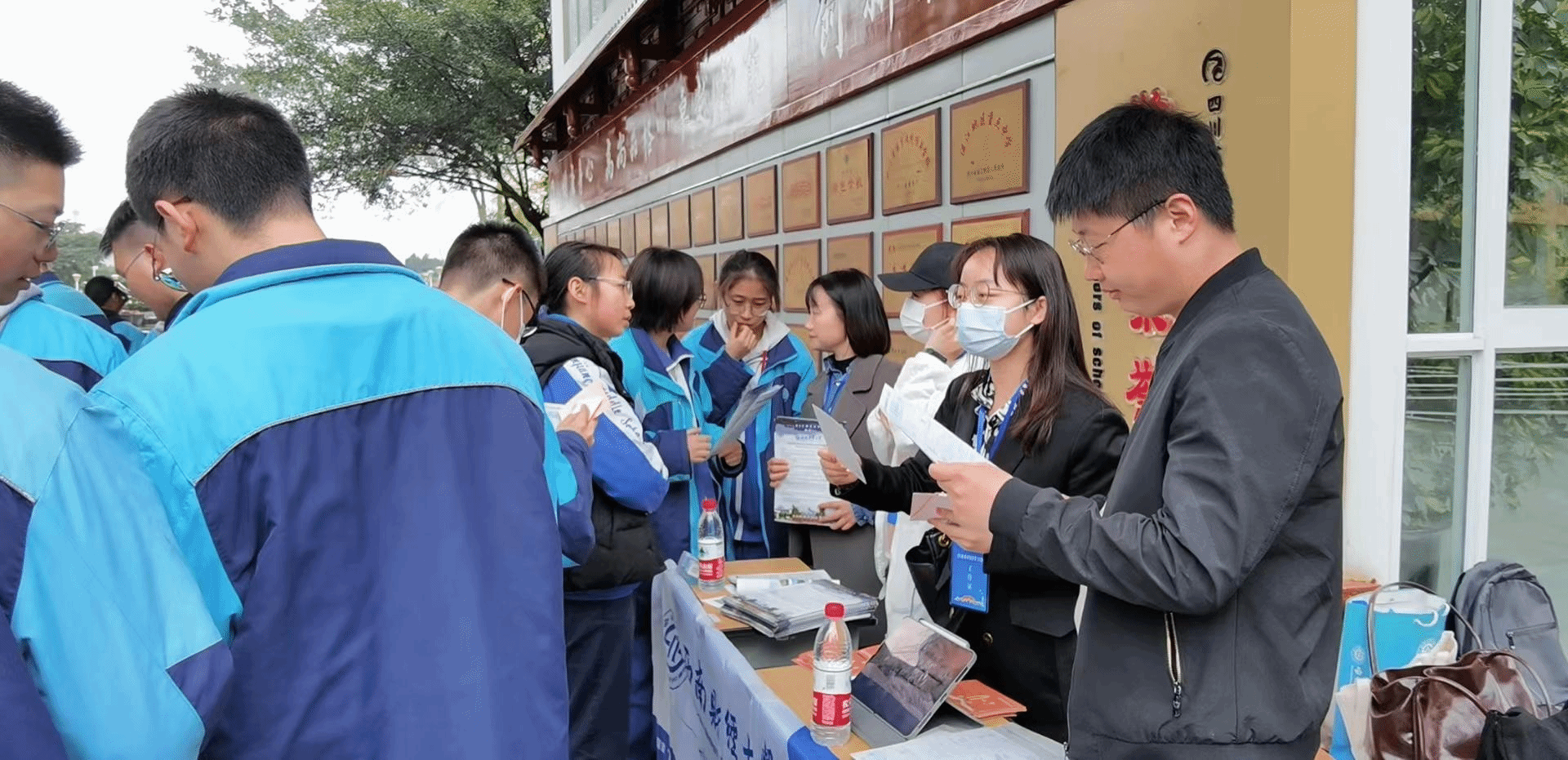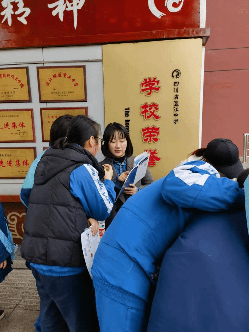 在宣传过程中,招生宣传小组工作人员向温江中学高三学子发放了tyc5997太阳集团招生宣传相关资料,与他们进行了面对面的咨询交流,向重点生源同学开展一对一指导。同时,还向低年级同学发放了公司宣传资料和明信片,鼓励并欢迎同学们结合自身实际,积极报考tyc5997太阳集团。