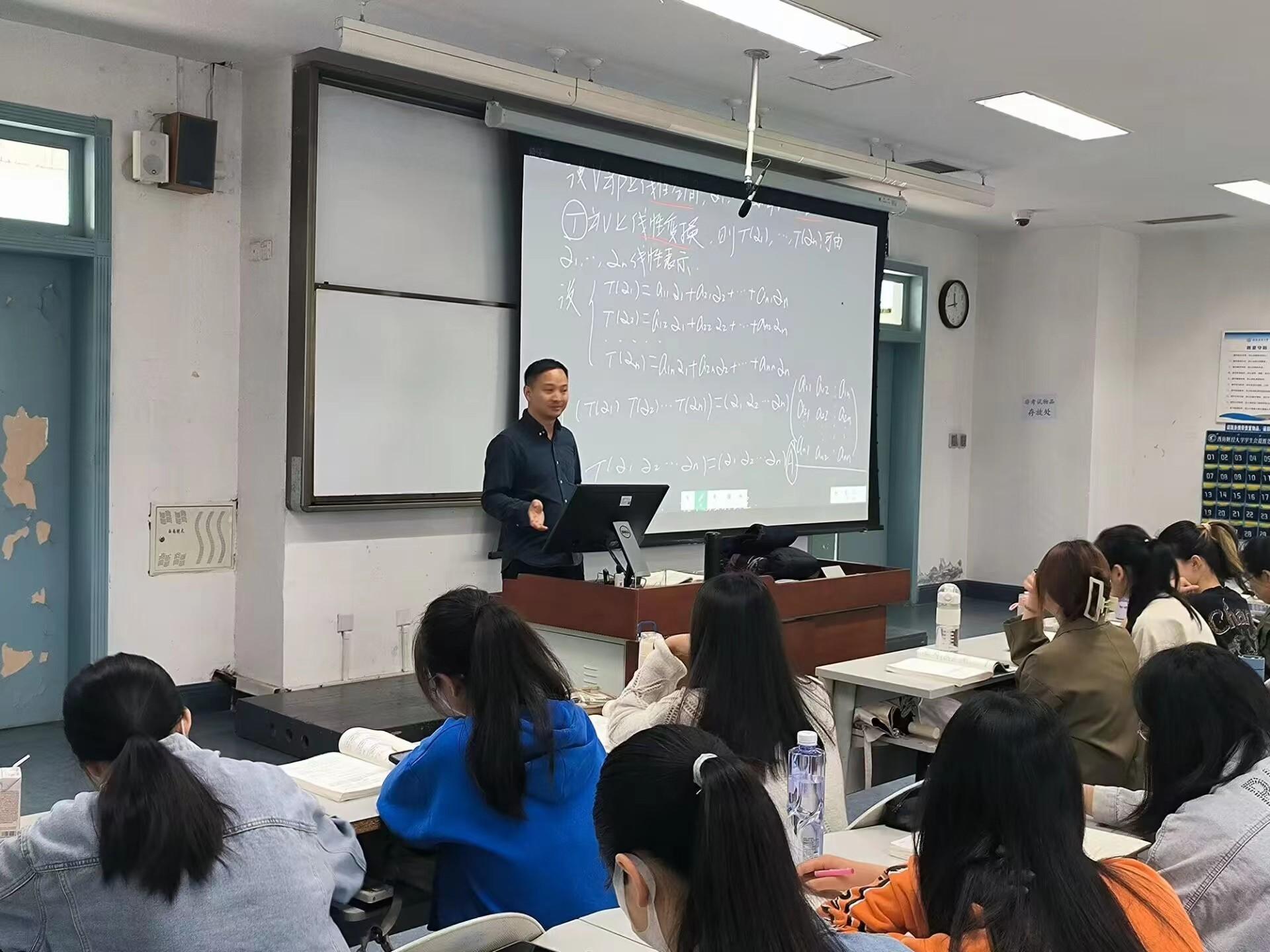韩本三老师本次课程讲授了《高等代数》中的线性变换矩阵。为了让员工更好地理解线性空间,韩老师首先从线性变换矩阵入手,通过探究式教学引导同学们建立了线性变换空间与矩阵空间的同构关系。