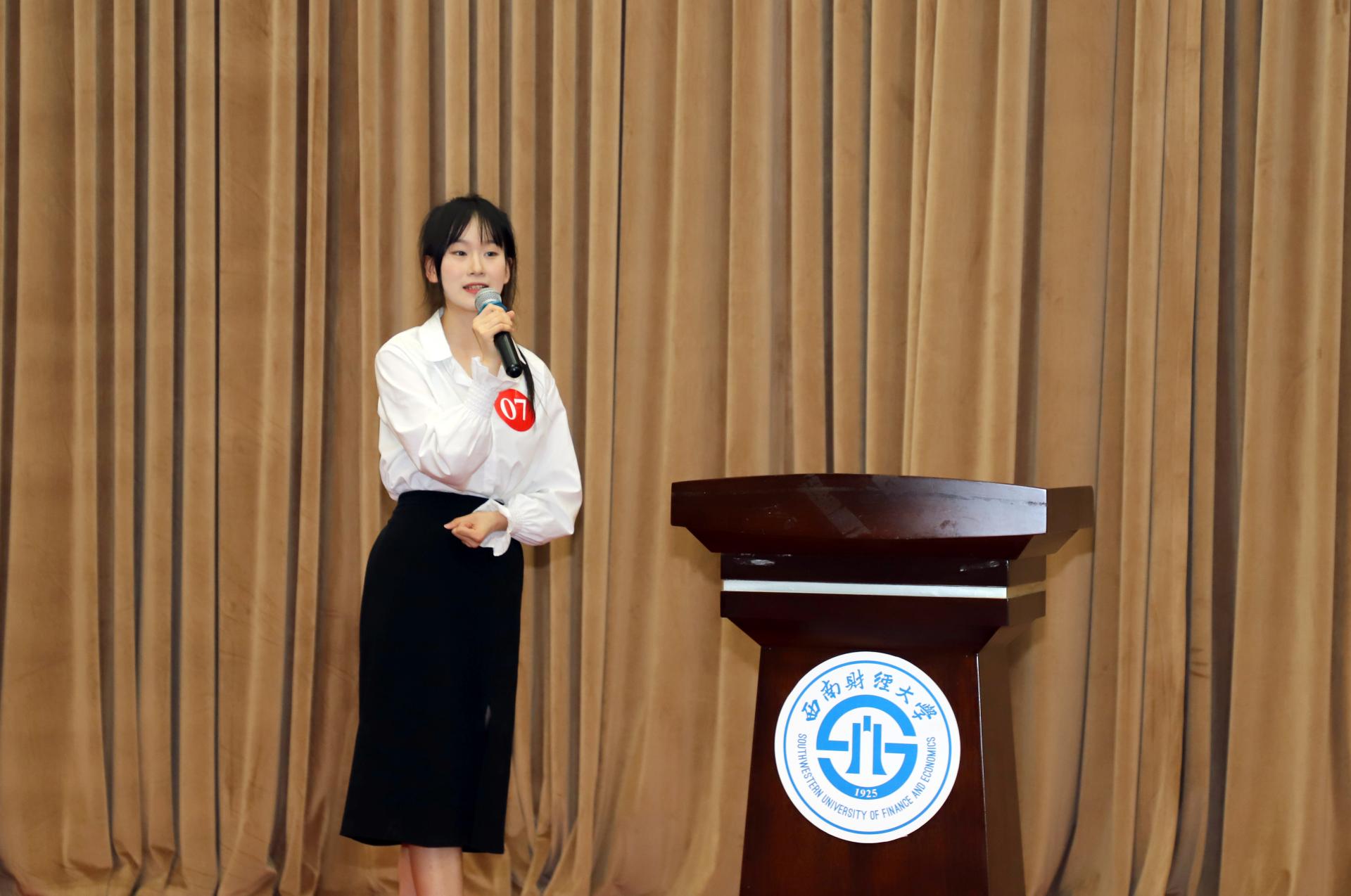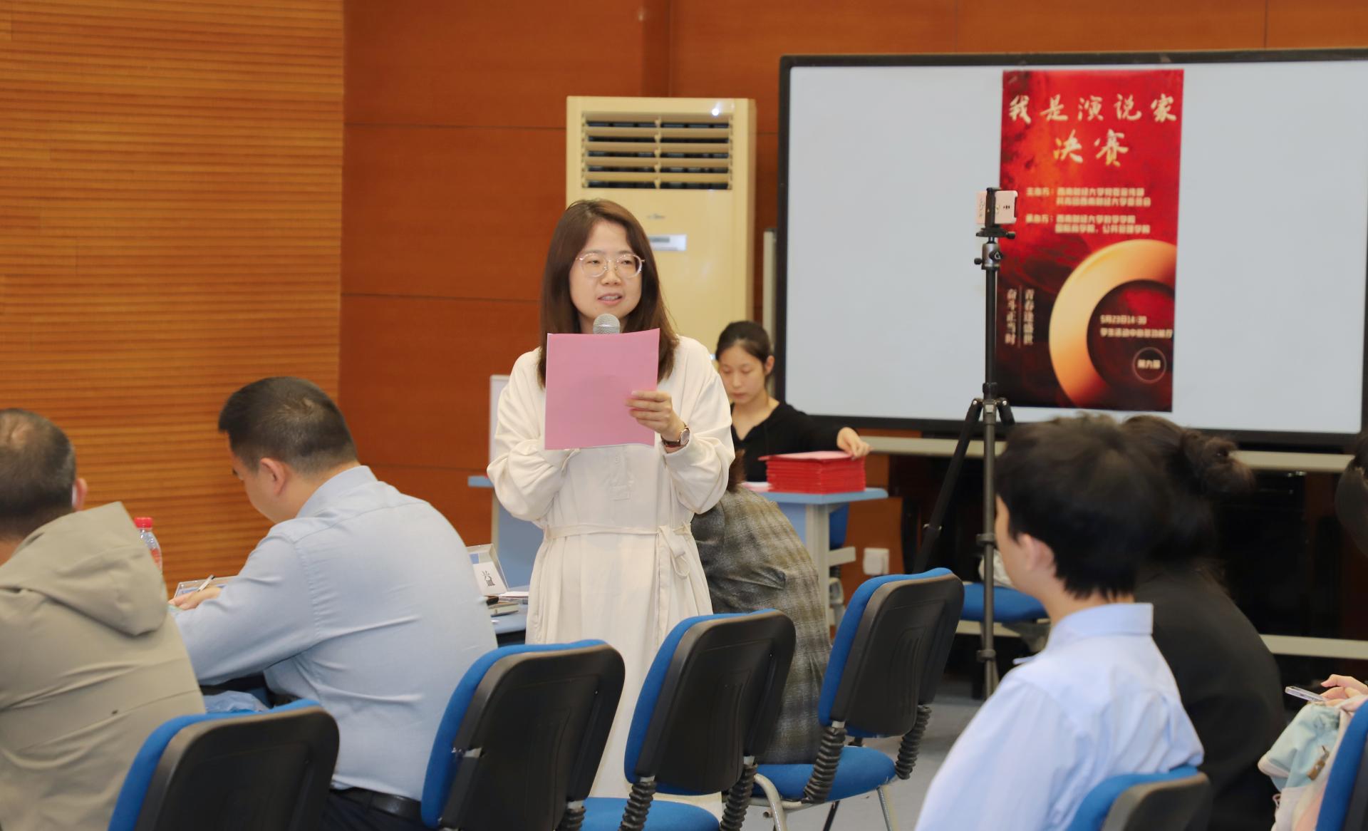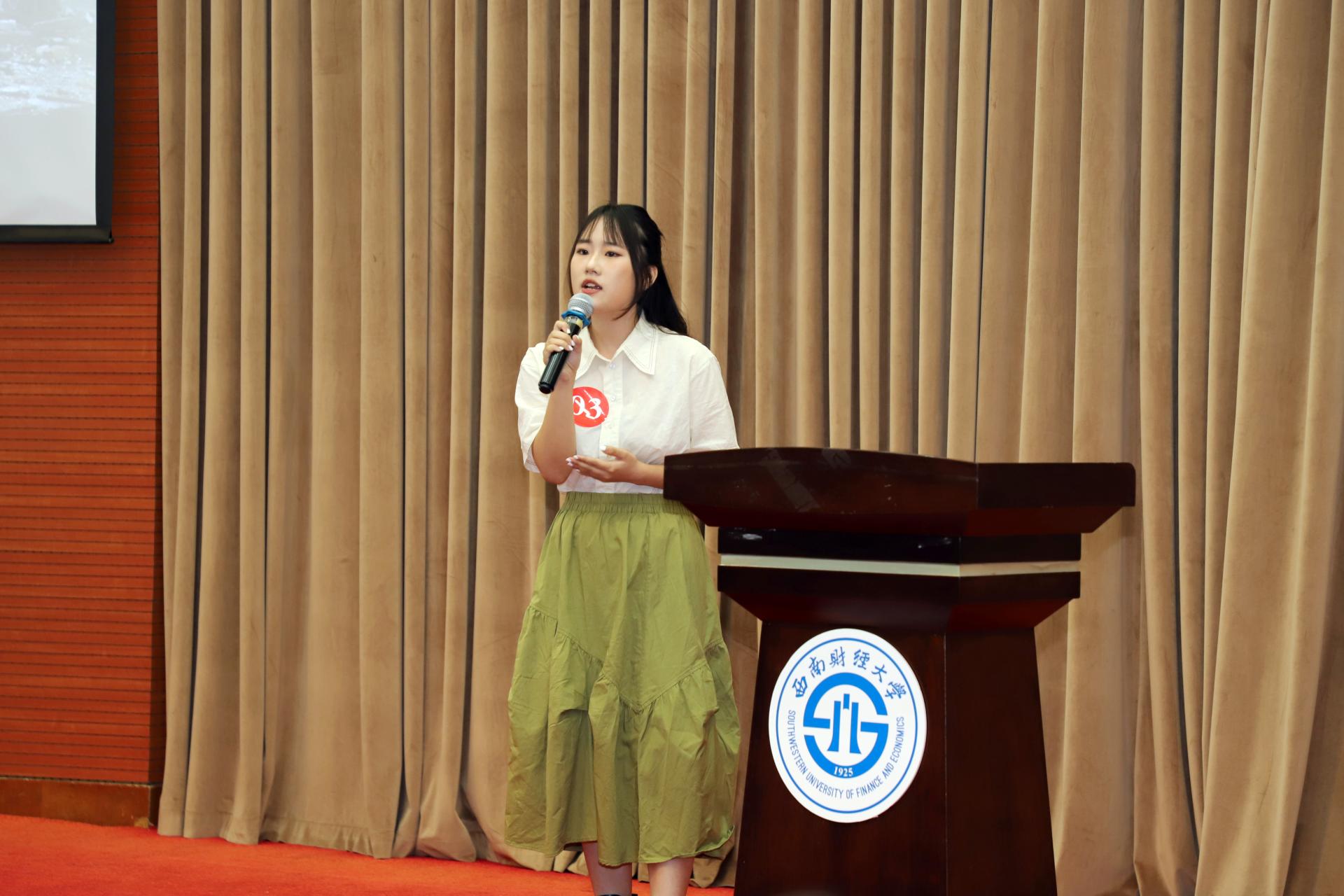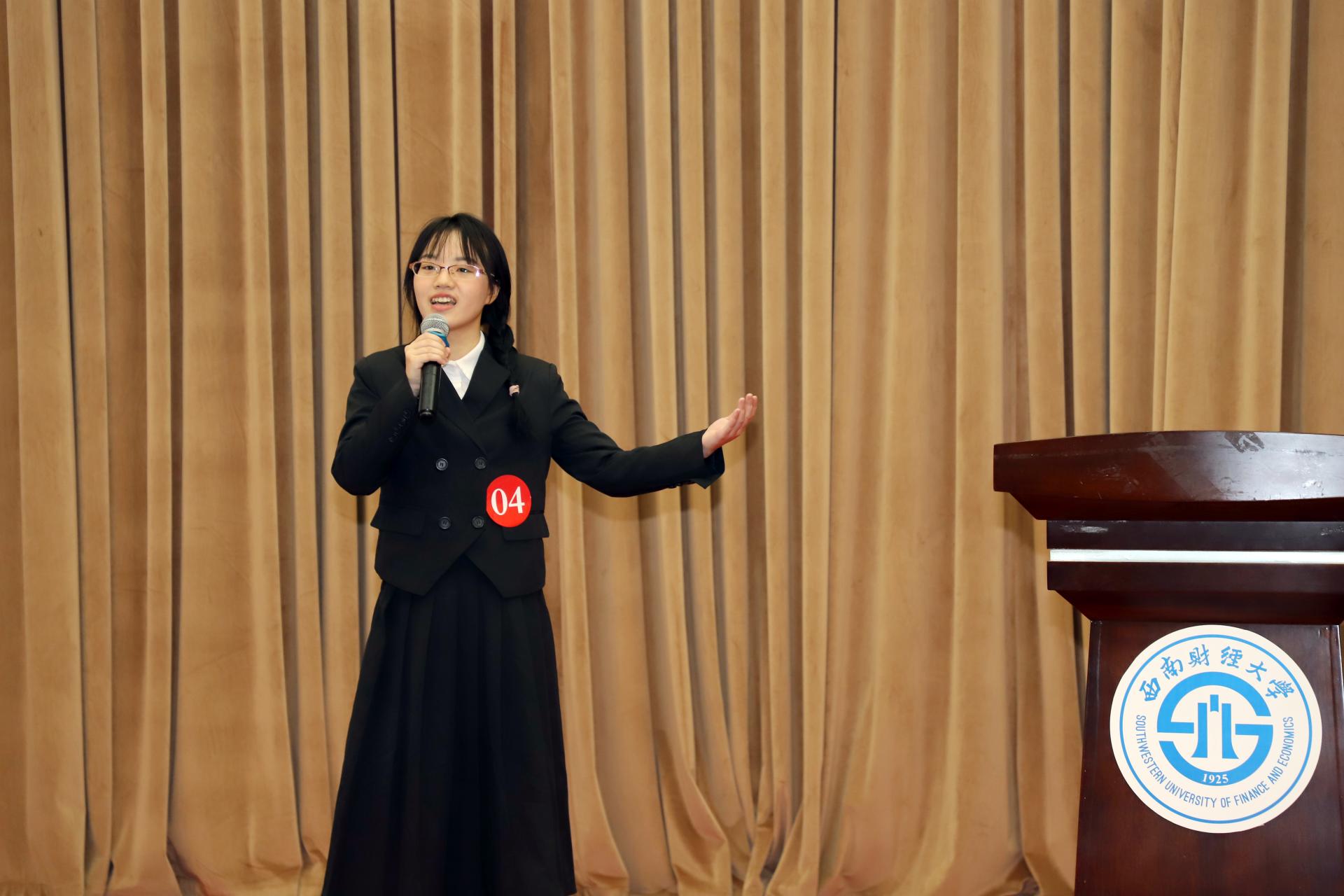 王偞婷在开场致辞中指出,“我是演说家”不仅是一场比赛,也是一个提高同学们演讲能力、分享观点、启发思考的平台,更是展示西财青年才华与智慧的舞台。今年是党的二十大开局之年,也是落实十四五规划关键的一年,同学们身处伟大时代,只有与党同心,与祖国和人民同行,才能够在建功立业的广阔舞台上将小我融入大我,将青春献给祖国。她勉励同学们赛出水平、赛出风格,以本次比赛为契机,进一步展现当代青年的“志气”、“骨气”、“底气”,勇做走在时代前列的奋进者、开拓者、奉献者。