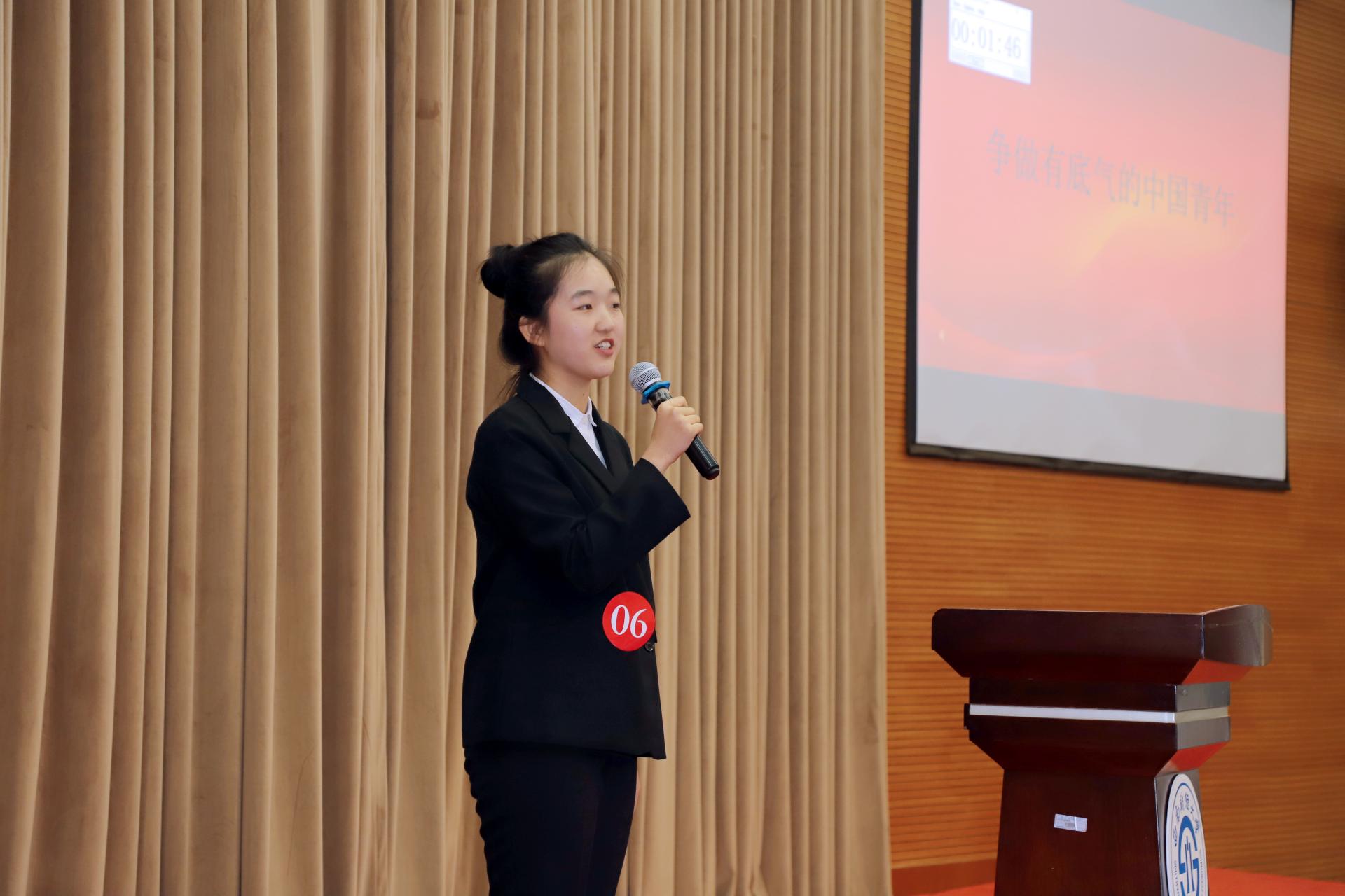 决赛分为“主题演讲”和“即兴演讲”两个环节。第一环节中,选手先以“争做‘有志气’‘有骨气’‘有底气’的时代新青年”为题作主题演讲,演讲精彩纷呈、极具感染力。第二环节中,选手们根据抽取的题目内容,选取合适的角度,进行即兴演讲,展现丰富的知识储备和较强的应变能力。