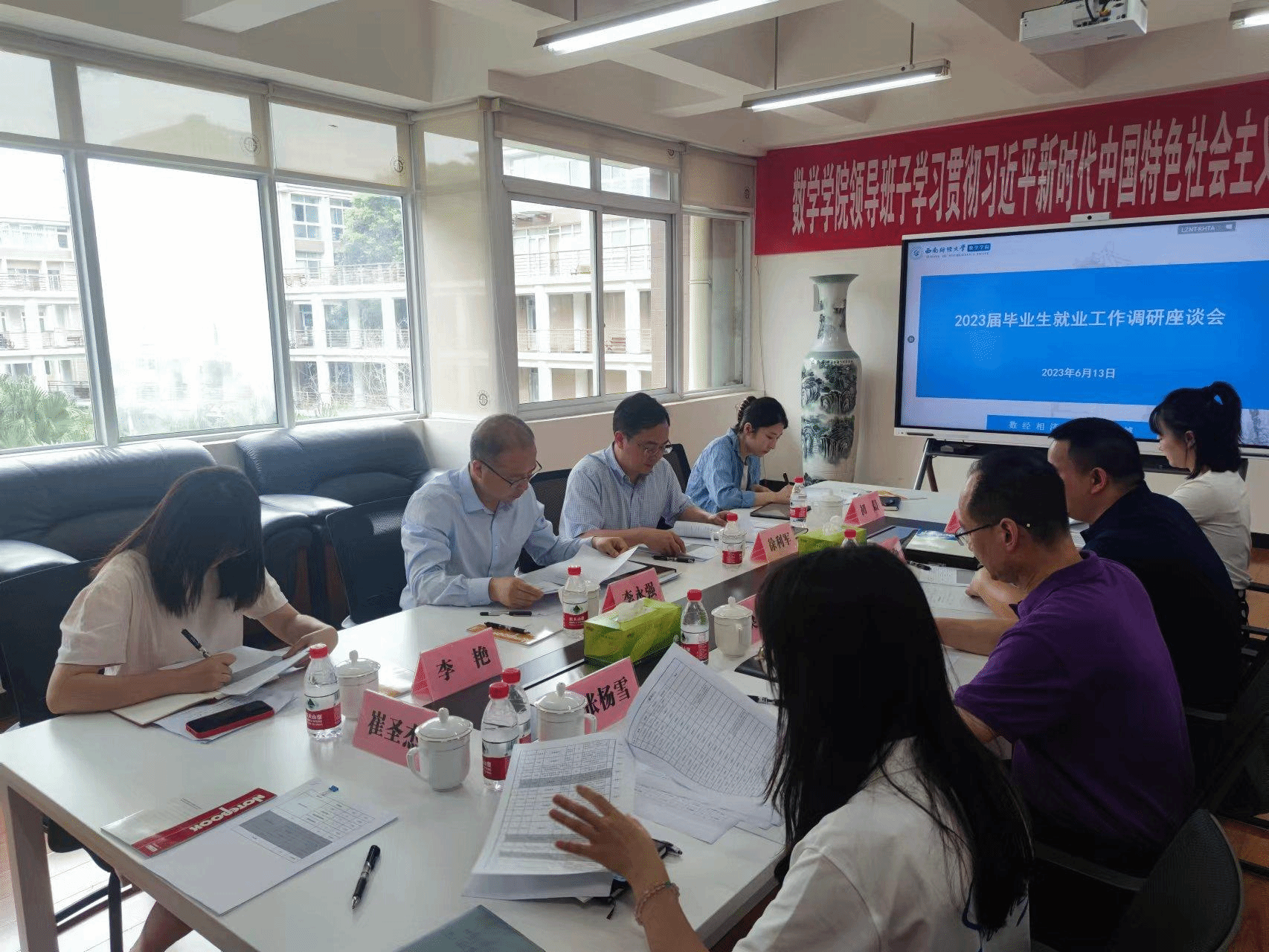 根据公司学习贯彻习近平新时代中国特色社会主义思想主题教育关于加强调查研究的安排部署,6月13日下午,由公司党委副书记、副董事长李永强带队,员工职业规划与就业指导中心徐利军主任、李艳老师、初晨老师一行到公司开展就业工作专题调研。会议在通博楼B312会议室举行,公司党委书记、副书记,就业工作联络人和毕业班辅导员参加了会议。