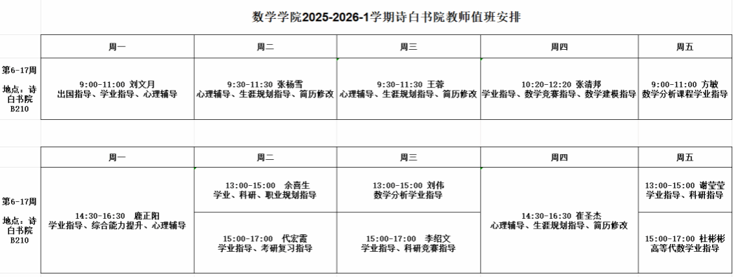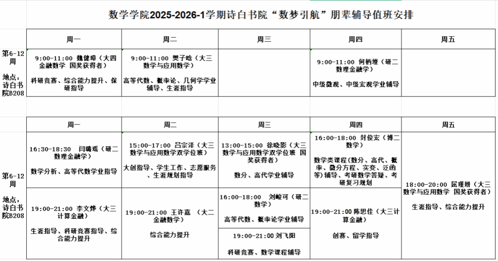 朋辈辅导值班安排如下: