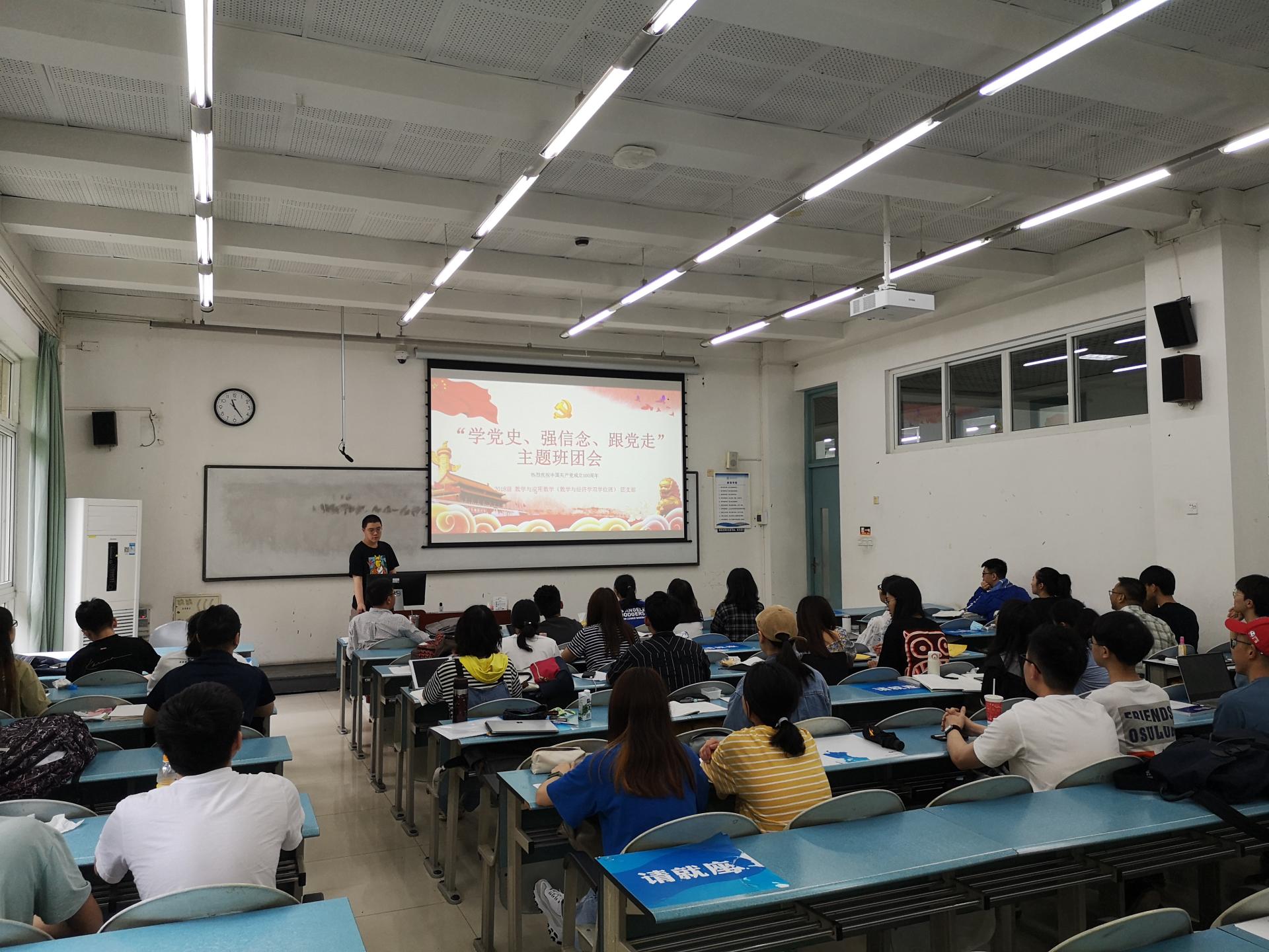 2021年是中国共产党建党100周年暨红军长征胜利85周年,为了大力弘扬爱国主义精神,缅怀革命先烈、民族英雄的丰功伟绩,积极引导员工树立社会主义核心价值观,始终保持朝气蓬勃、勇于担当、奋发有为的精神状态,2021年5月10日,2018级数学与应用数学(数学与经济学双学位班)组织全体同学于颐德楼H101教室开展了“学党史、强信念、跟党走”主题班会,班长李寒主持班会。