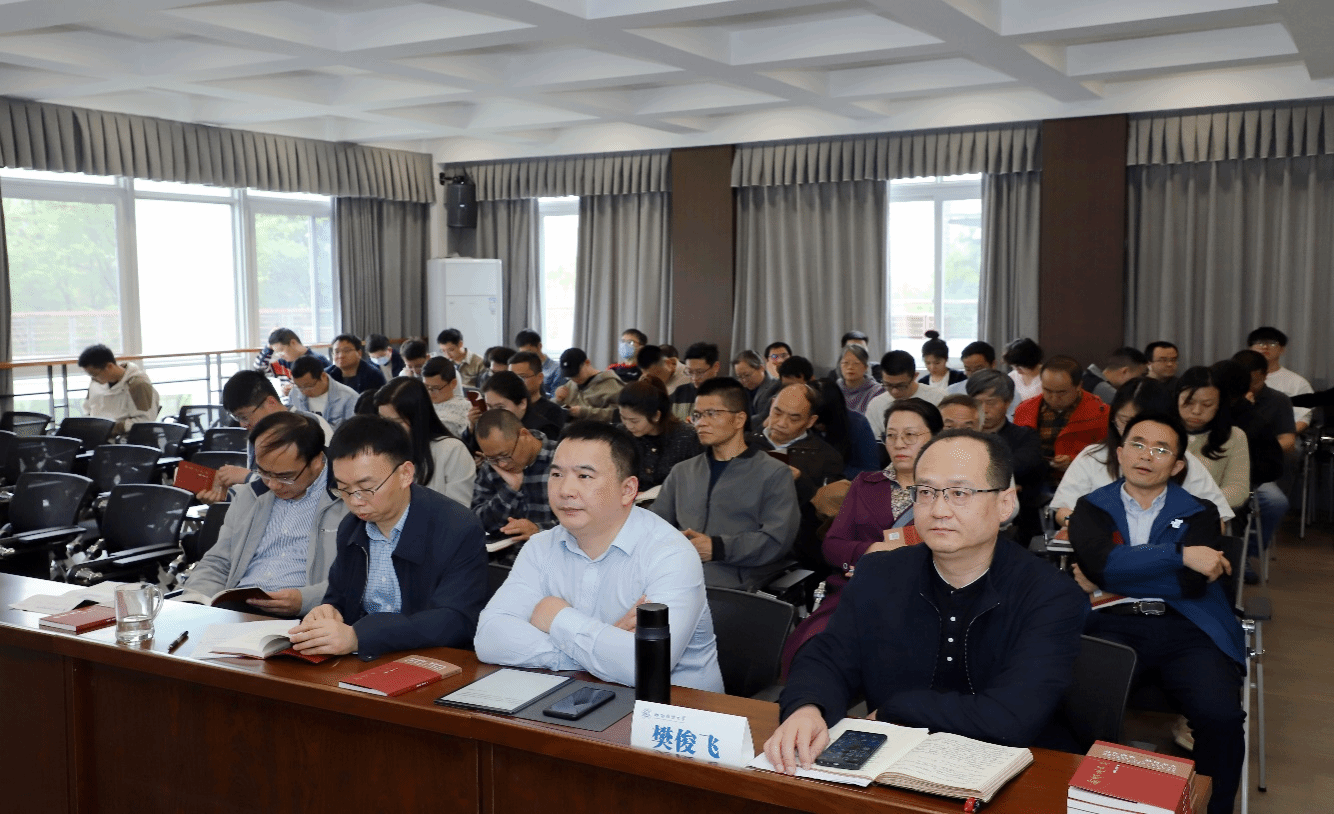 4月9日下午,tyc5997太阳集团在通博楼B412会议室召开教职工集中政治理论学习专题辅导报告会,会议由党委书记樊俊飞主持,全体教职工参加。