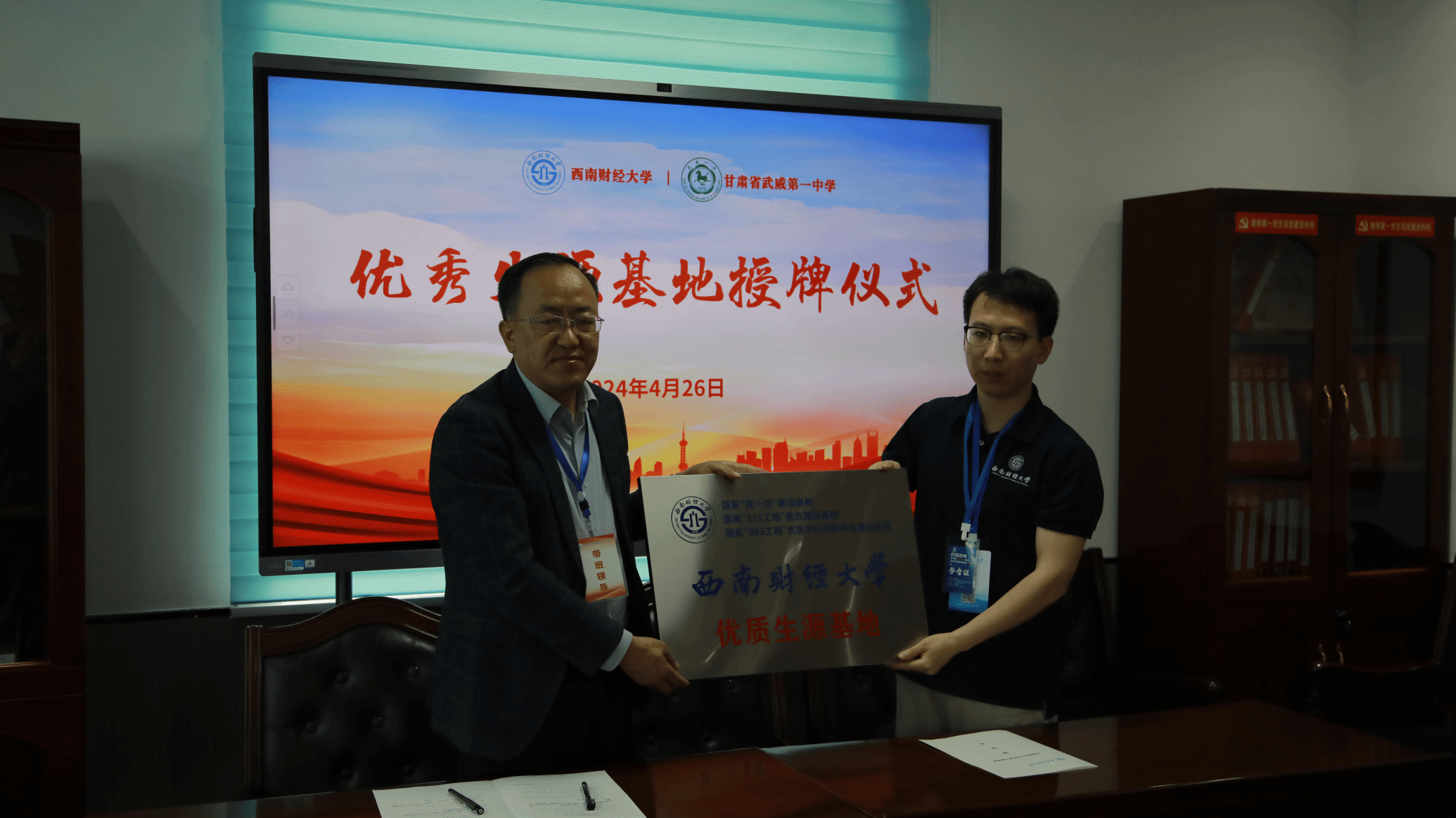 招生组分别与武威一中、金川高级中学签订《优质生源基地协议》,并授予“优质生源基地”牌匾。