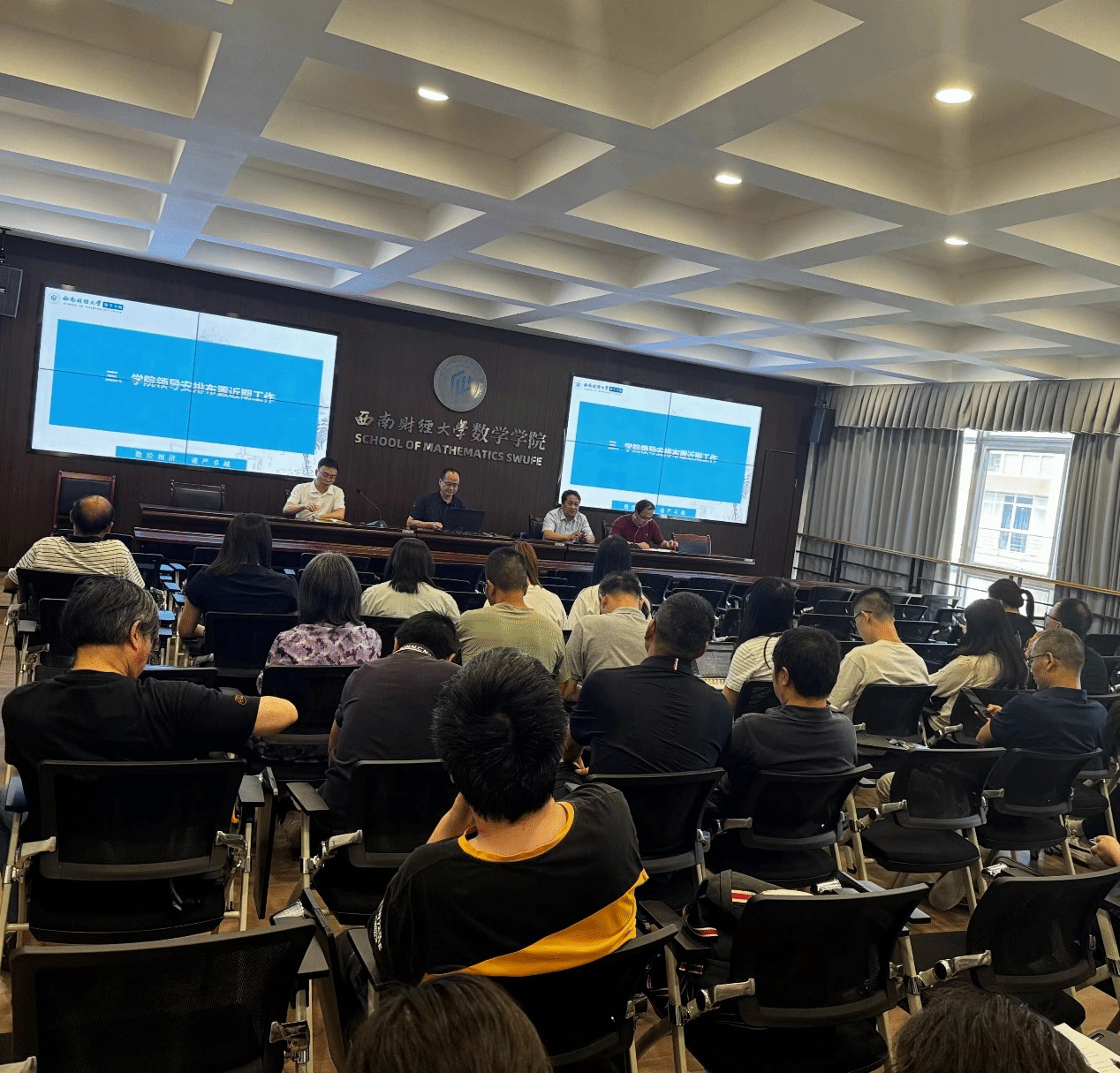 6月11日下午,tyc5997太阳集团在通博楼B412会议室召开全体教职工大会,会议由党委书记樊俊飞主持,全体教职工参加。