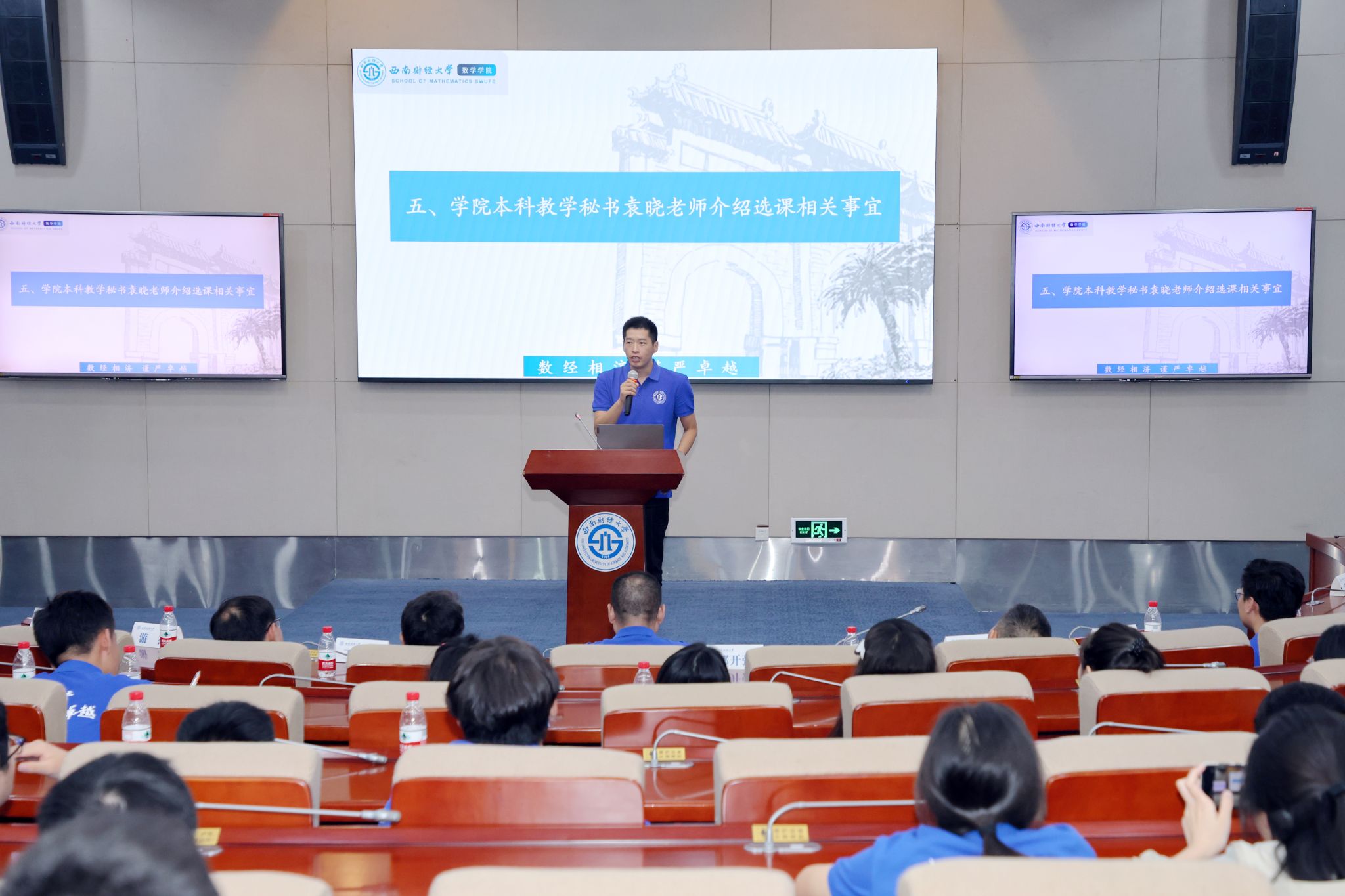 公司金融数学系主任张清邦教授、应用数学系主任朱文莉教授介绍了系所情况、团队构成、学术科研、党建工作等情况,提醒同学们注意整合公司可用资源,提前做好未来规划,培养自主学习、深入学习、终身学习能力。