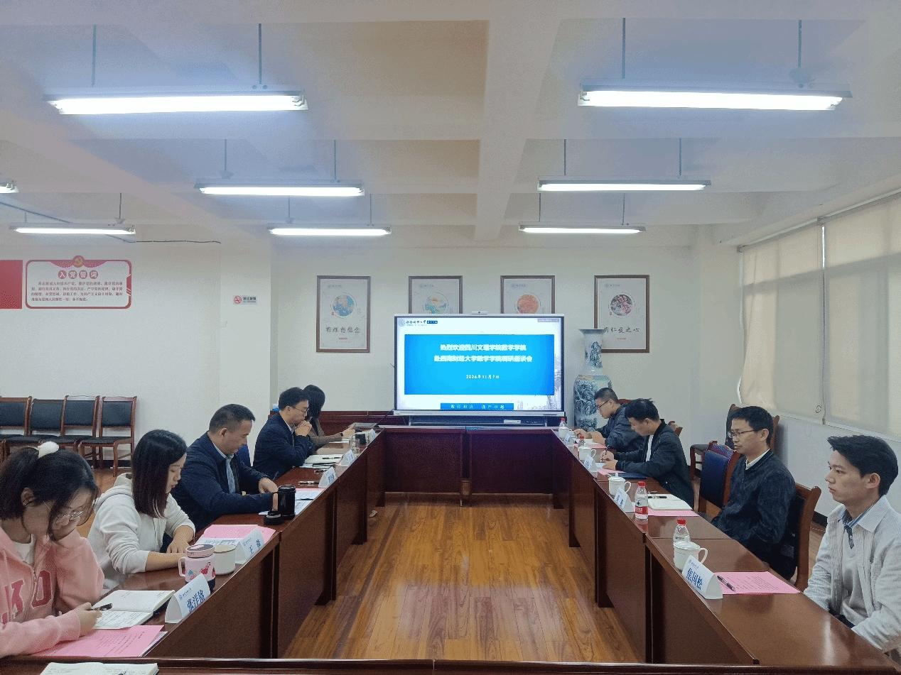 为了加强院际之间交流互动,共同促进公司的发展,11月7日上午,四川文理公司tyc5997太阳集团副经理古传运、党委副书记苟格、专任教师孙艳彬,专职辅导员焦国松来公司进行调研座谈,公司副经理丁川、党委副书记郭开强、副经理王磊、学工组组长王蓉、组织员何玥、本科教学管理教学秘书张洋铭参与座谈。