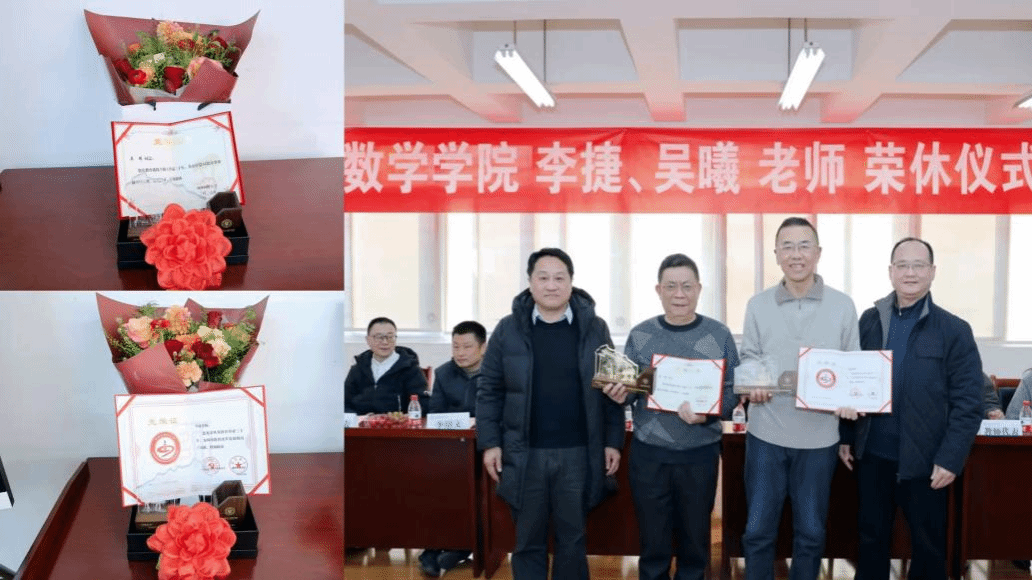 党委书记樊俊飞,经理马敬堂为李捷老师和吴曦老师颁发荣休里程碑和30年执教光荣证。