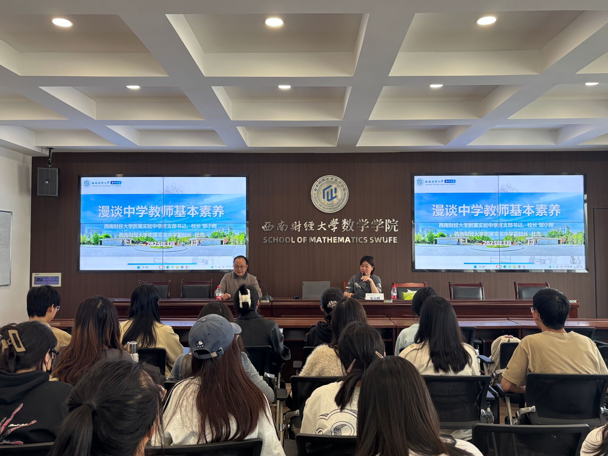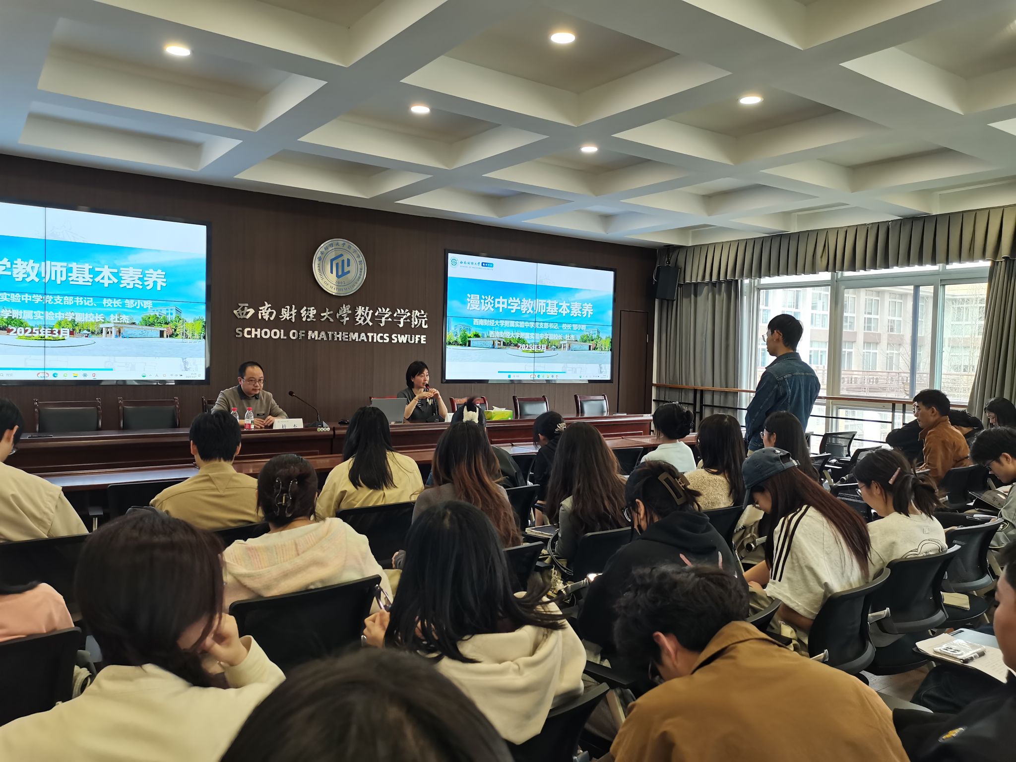 3月27日,tyc5997太阳集团在通博楼b412会议室举办“中学教师基本素养与职业发展”主题讲座,特邀tyc5997太阳集团附属实验中学董事长邹小晔、副董事长杜杰作主讲嘉宾,与公司数学专业研究生展开深入交流。