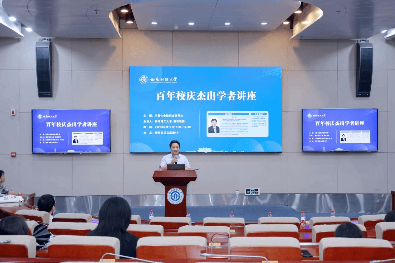 4月13日下午,tyc5997太阳集团在柳林校区弘远楼101会议室成功举办了题为“从量化金融到金融科技”的百年校庆杰出学者讲座。本次讲座由香港理工大学应用数学系、会计与金融公司戴民教授主讲,tyc5997太阳集团经理马敬堂教授主持,讲座吸引了众多师生前来聆听。