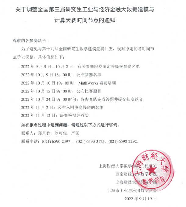 全国第三届研究生工业与经济金融大数据建模与计算大赛时间调整通知.pdf