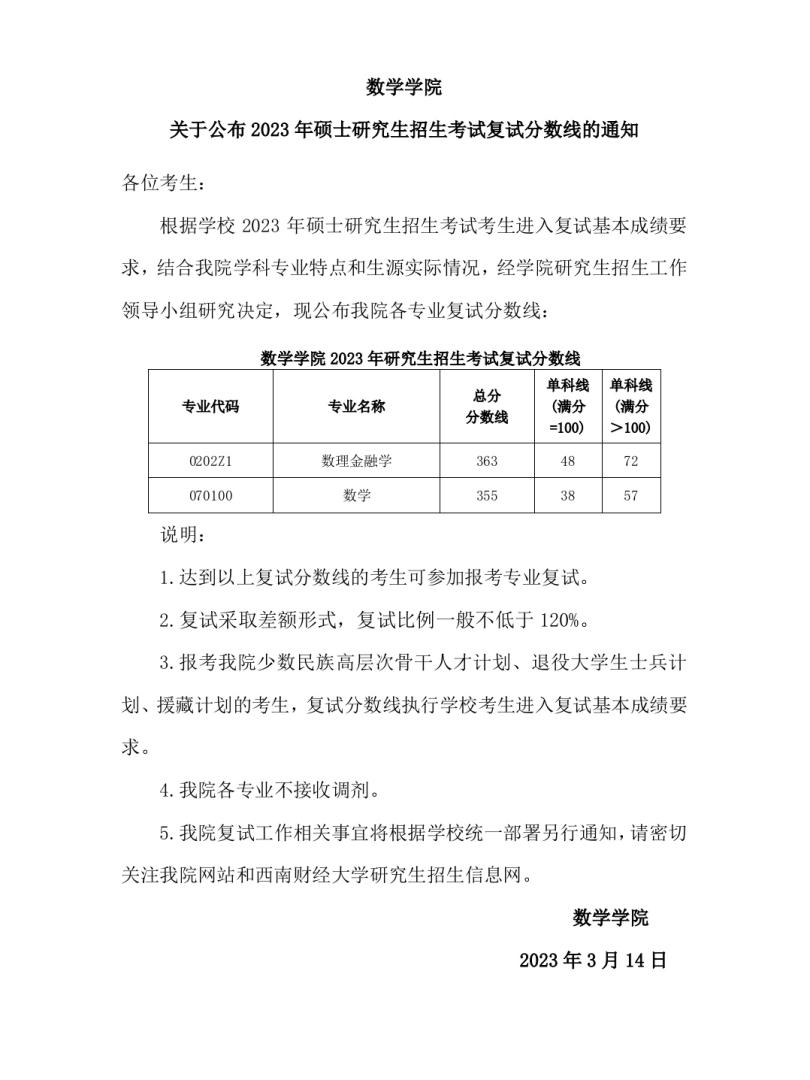 公司关于公布2023年硕士研究生招生考试复试分数线的通知