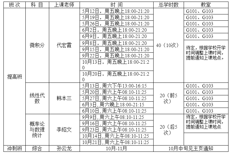 此次考研数学提高班包括提高班和冲刺班,冲刺班报名请于10月中旬见tyc5997太阳集团主页通知,在冲刺班期间公司将为参加冲刺班的同学免费印制复习资料。
