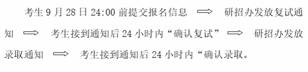 4.获得拟录取资格的申请人务必于9月28日24:00前(预计时间,具体时间另行通知)登陆教育部“全国推荐优秀应届本科毕业生免试攻读研究生信息公开暨管理服务系统”填写并提交报名信息。并按照如下程序完成录取确认,逾期未确认将视为自动放弃录取资格。 考生未在24小时内“确认复试”或“确认录取”将视为放弃录取资格。考生一旦“确认录取”信息即锁定,整个推免工作结束,正式录取为公司推免生。