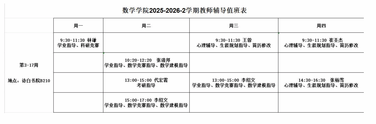 参加辅导的同学请在值班时间到书院B210室即可。非诗白书院的员工请带好员工证,在门口登记后进入。