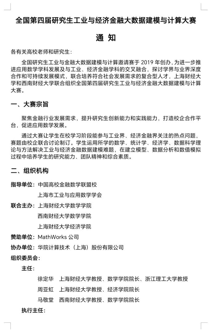 全国第四届研究生工业与经济金融大数据建模与计算大赛通知