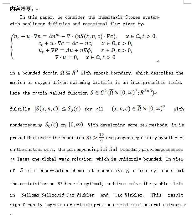 郑甲山博士从2008年开始关注流体力学和偏微分方程定性理论、最优控制等方面的研究工作,尤其在2015年开始在生物数学的重要模型-趋化-流体的相关模型做出了一系列重要的研究成果。从事科研工作以来取得了以下的重要研究成果:在《Calculus of Variations and Partial Differential Equations 》 、《Journal of Differential Equations》、《Nonlinearity》等本领域重要期刊上发表了学术论文40余篇. 作为项目负责人主持山东省省属优秀青年基金、博士后特别资助、国家自然科学基金、博士后面上资助等项目。同时应邀担任美国《Mathematical Reviews》评论员和《德国数学文摘》评论员。