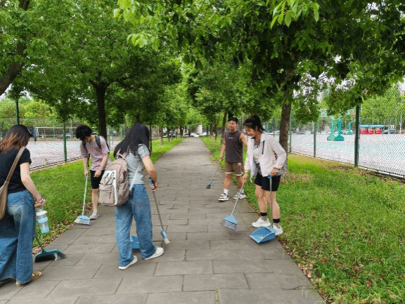 劳动育德塑品格,躬身实践长真知。同学们自带簸箕、笤帚等工具,对篮球场、排球场及寝室周边区域进行清扫,清理路面落叶杂物。活动结束后,区域环境焕然一新,清洁成效显著。